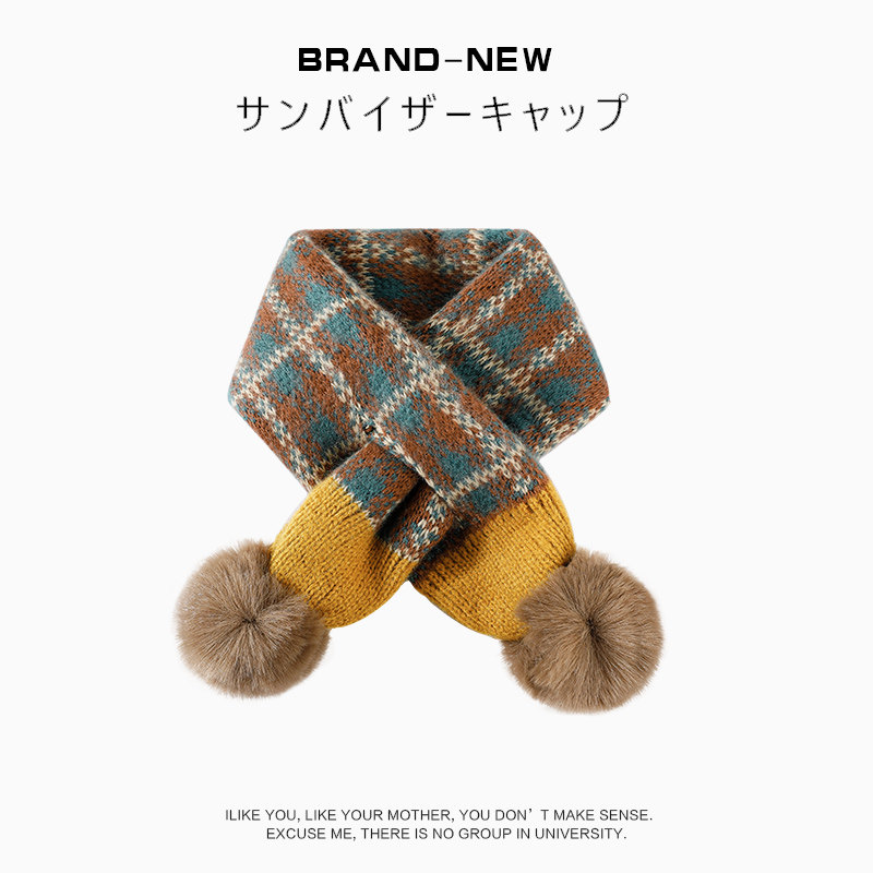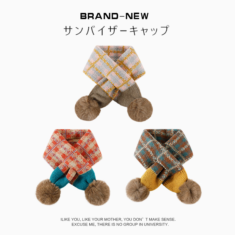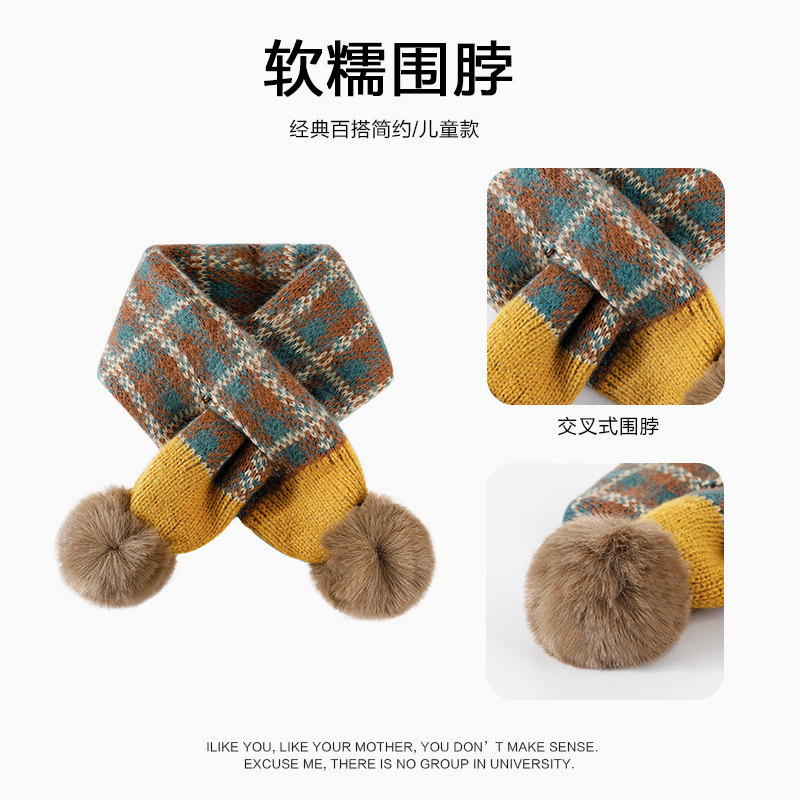 天猫儿童针织围脖加厚保暖冬季男童女童防风护颈围巾毛球宝宝交叉围巾