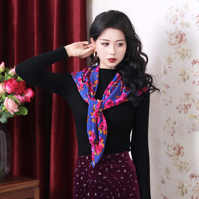 淘上海故事真丝丝巾女冬季薄款法式花卉小方巾100%桑蚕丝围巾纱巾