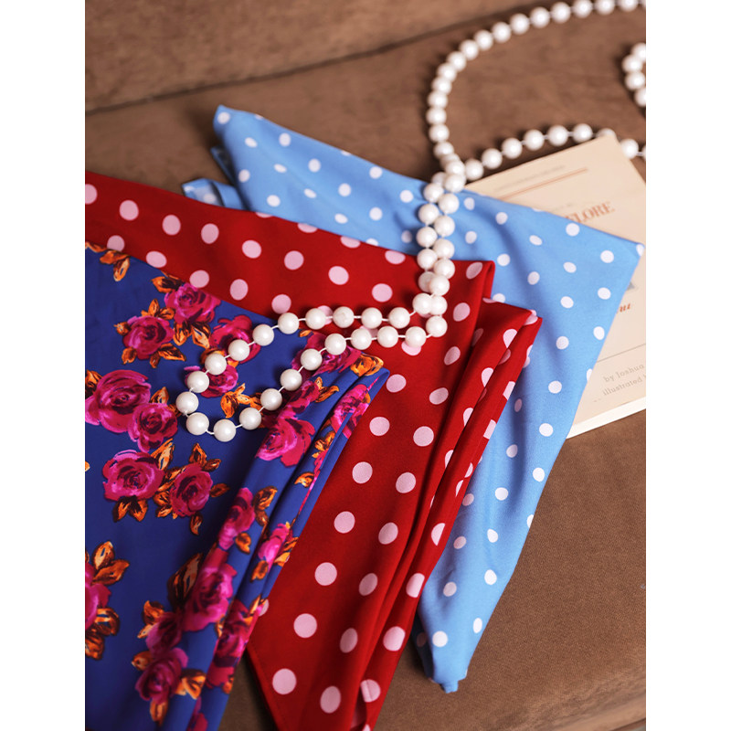 淘宝温柔点缀~复古女装穿搭装饰春秋薄款波点花色围巾丝巾