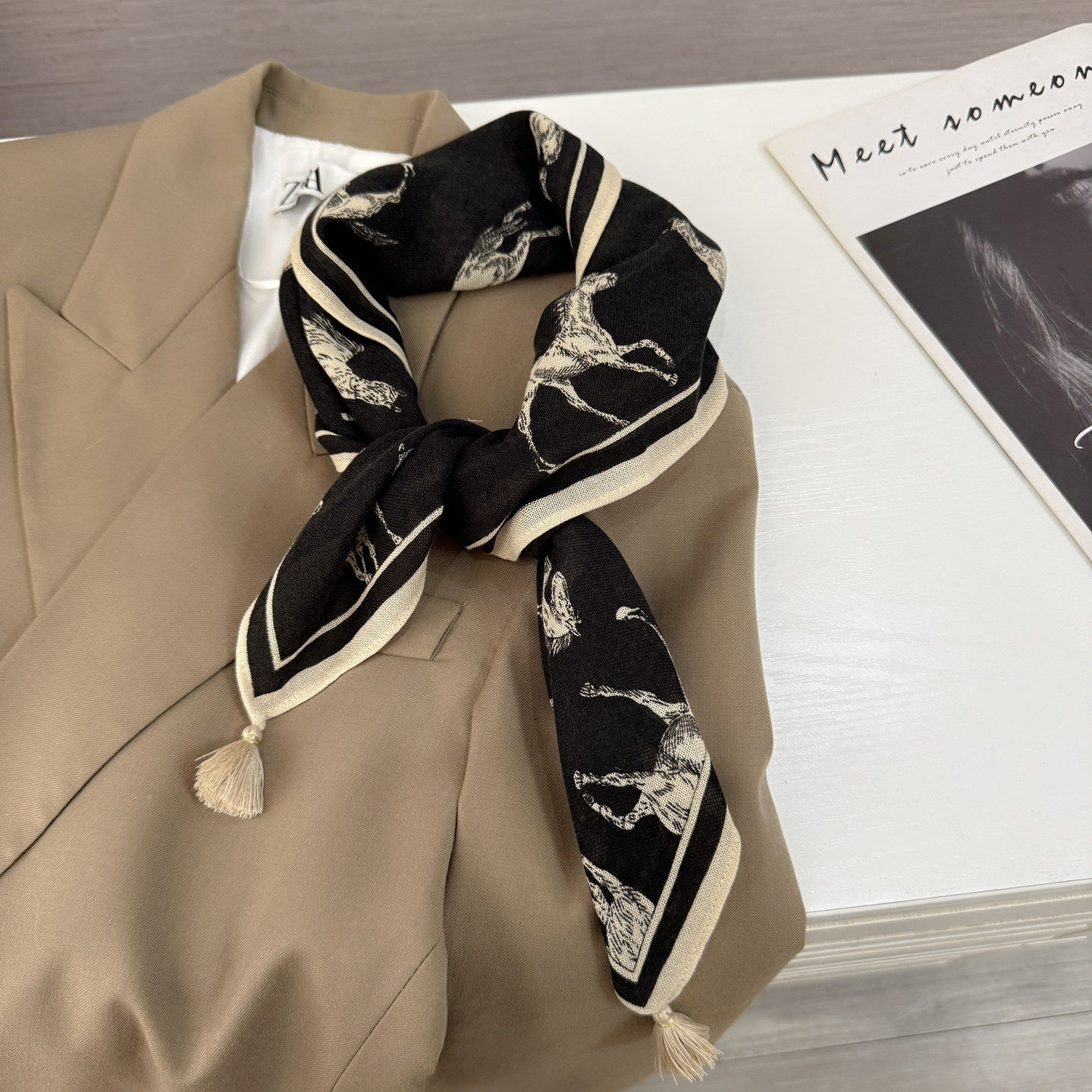 淘宝早春新款时尚小马方巾柔软羊毛手感护颈围巾女腰间丝巾系脖高级感