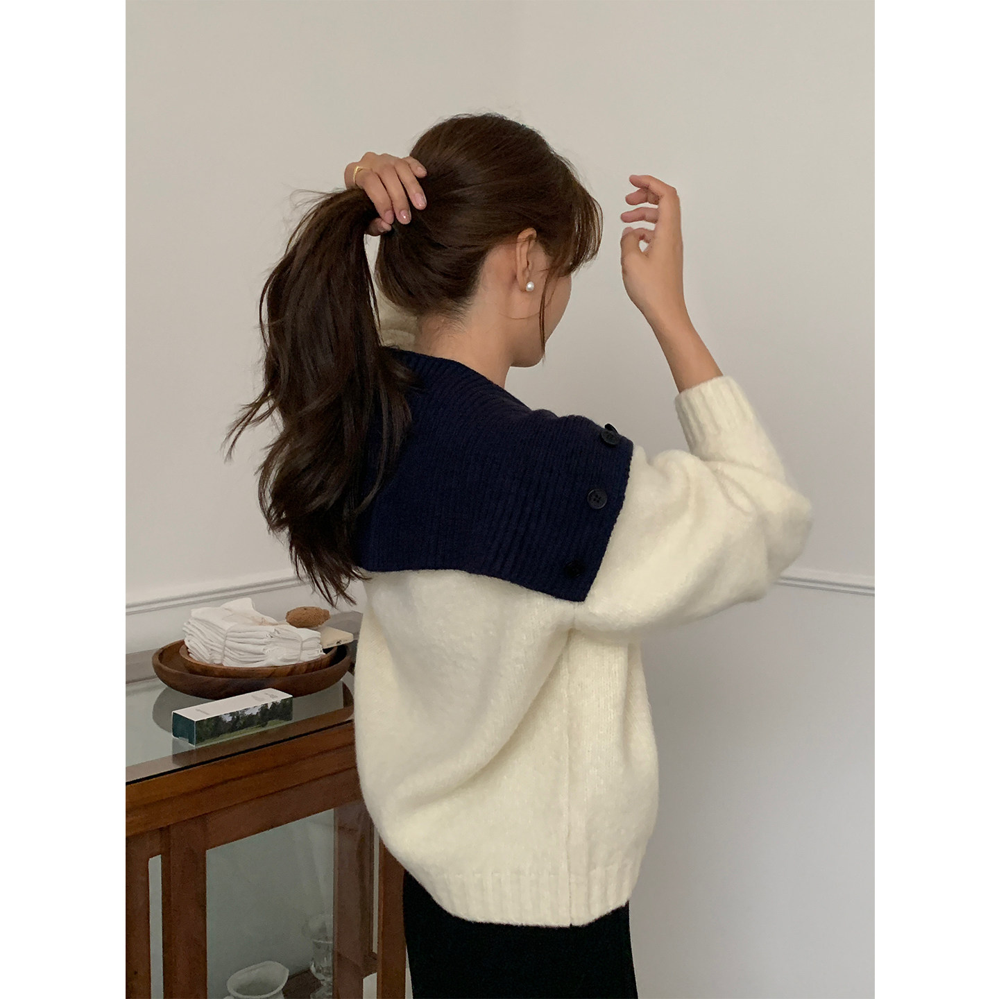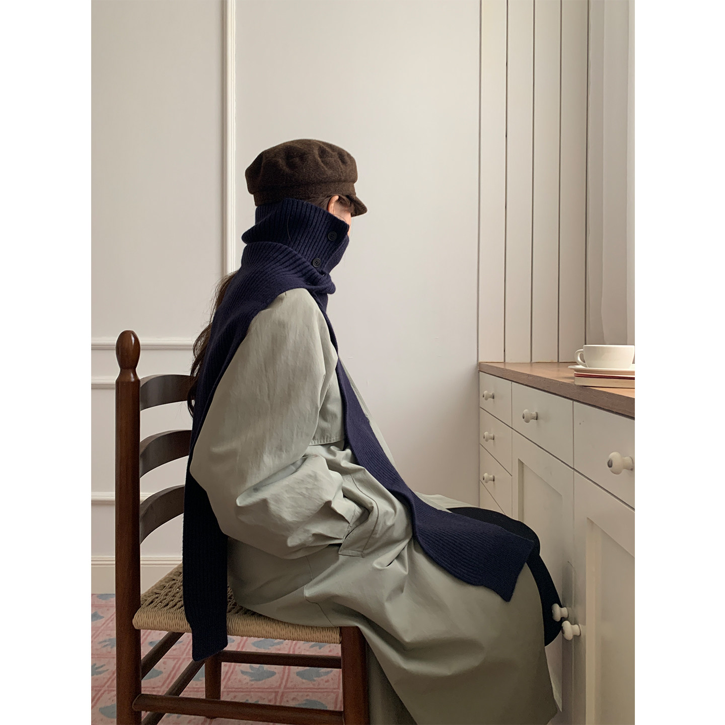 淘宝芝士商店~针织毛衣披肩女外搭小坎肩韩系藏青色脖套保暖围巾围脖