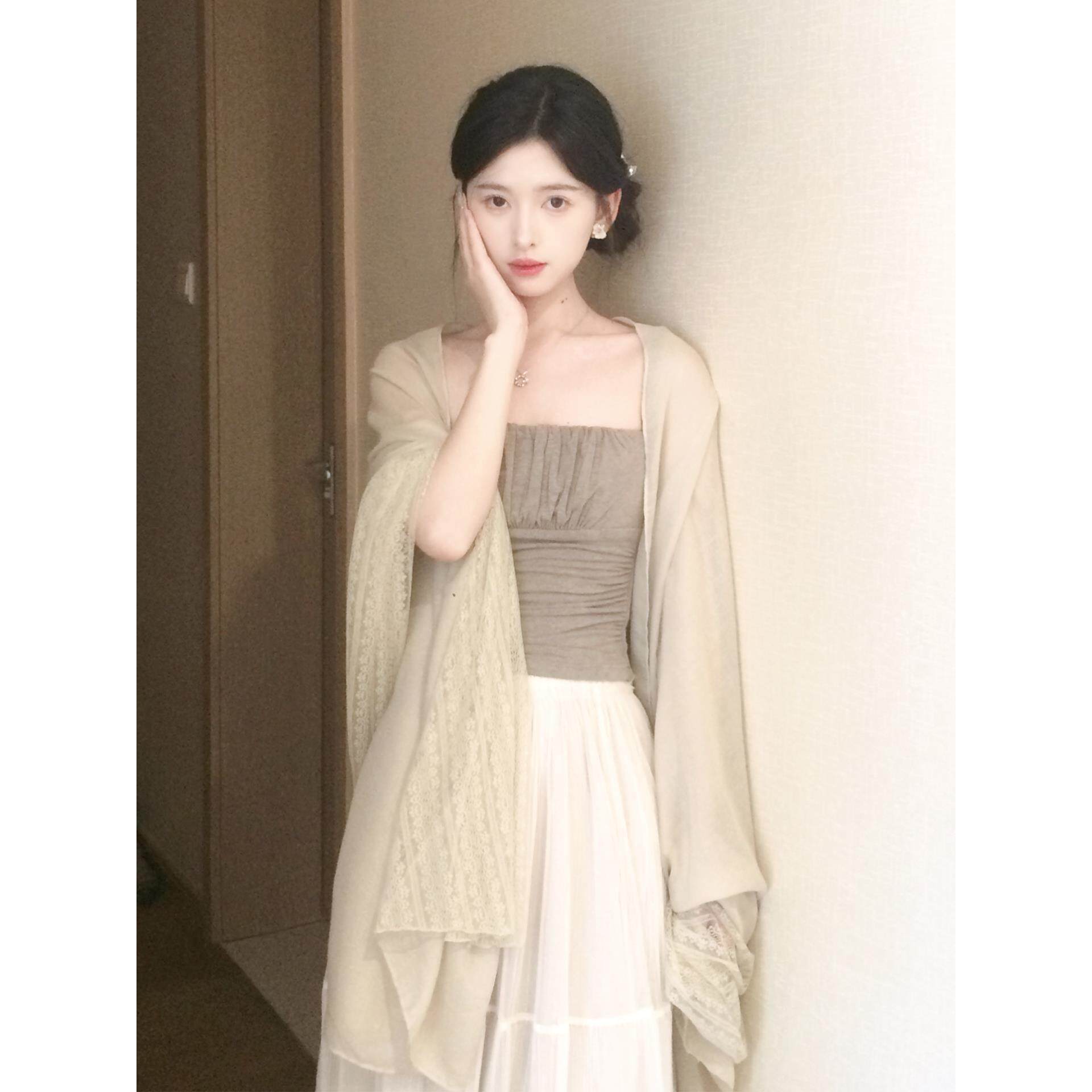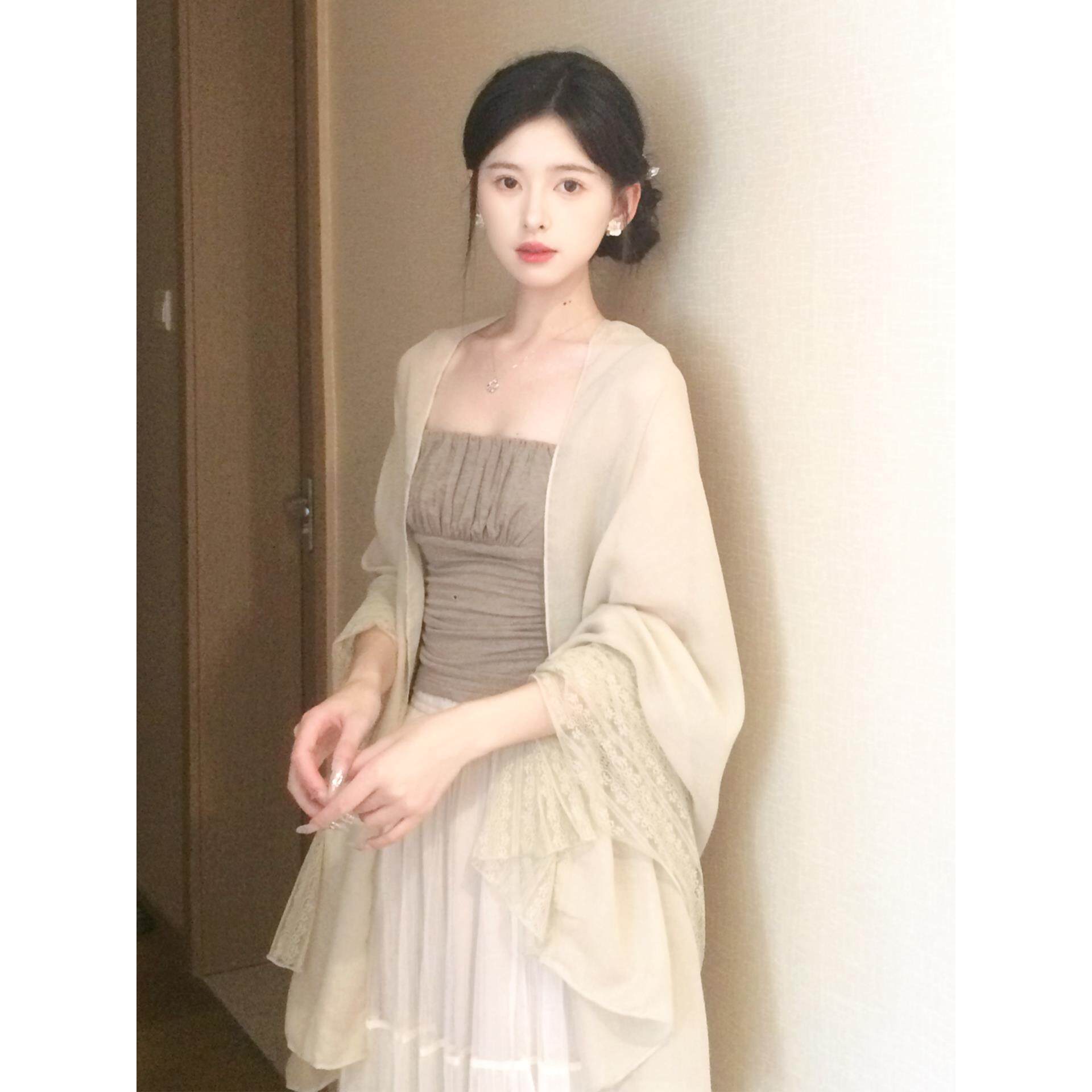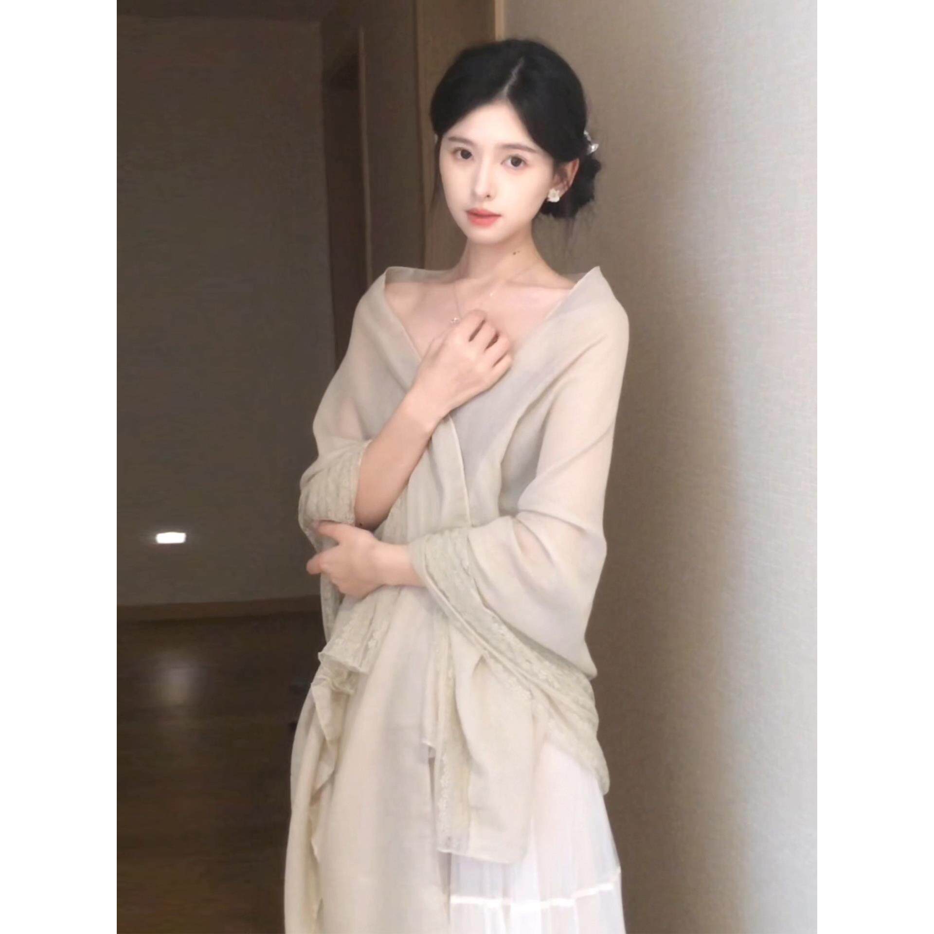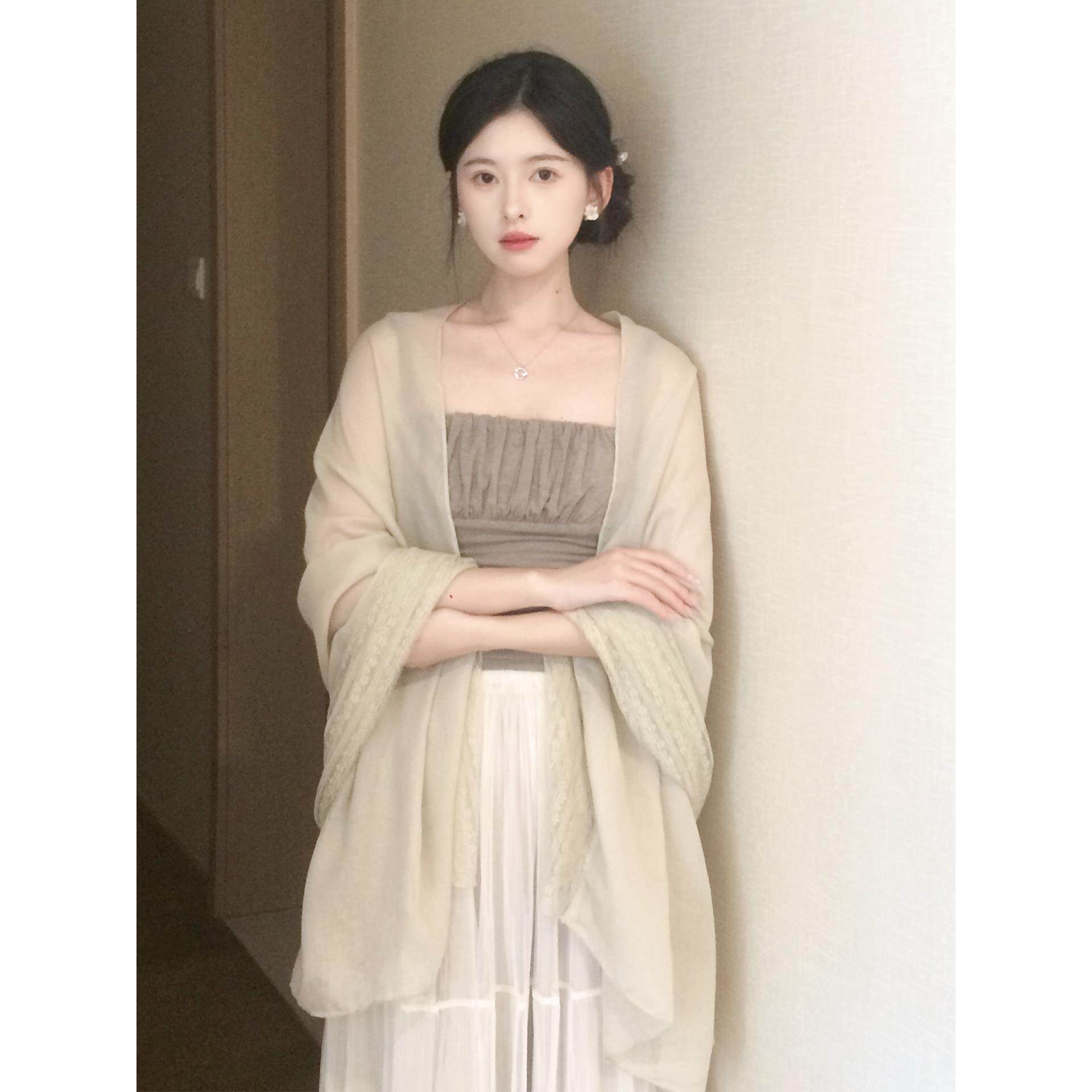 淘宝蕾丝棉麻丝巾披肩外搭裙子旗袍温柔薄款围巾女海边旅游拍照穿搭