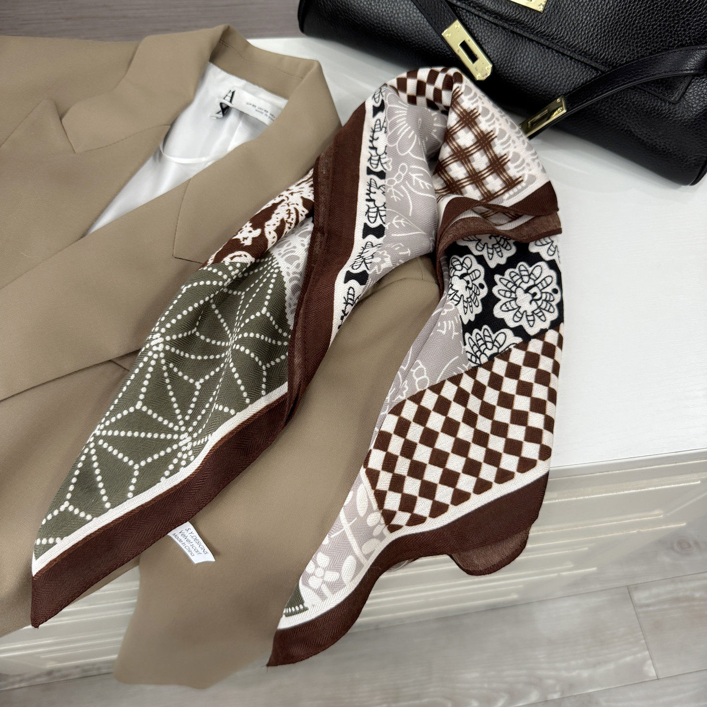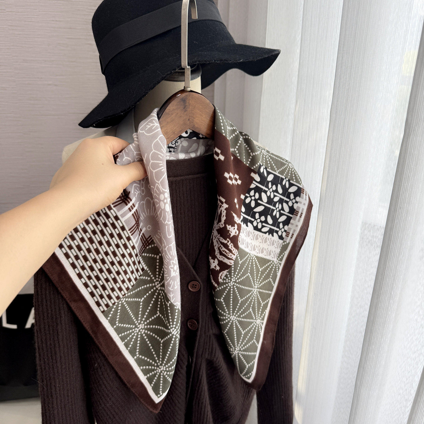 温柔点缀~复古女装穿搭装饰春秋薄款波点花色围巾丝巾