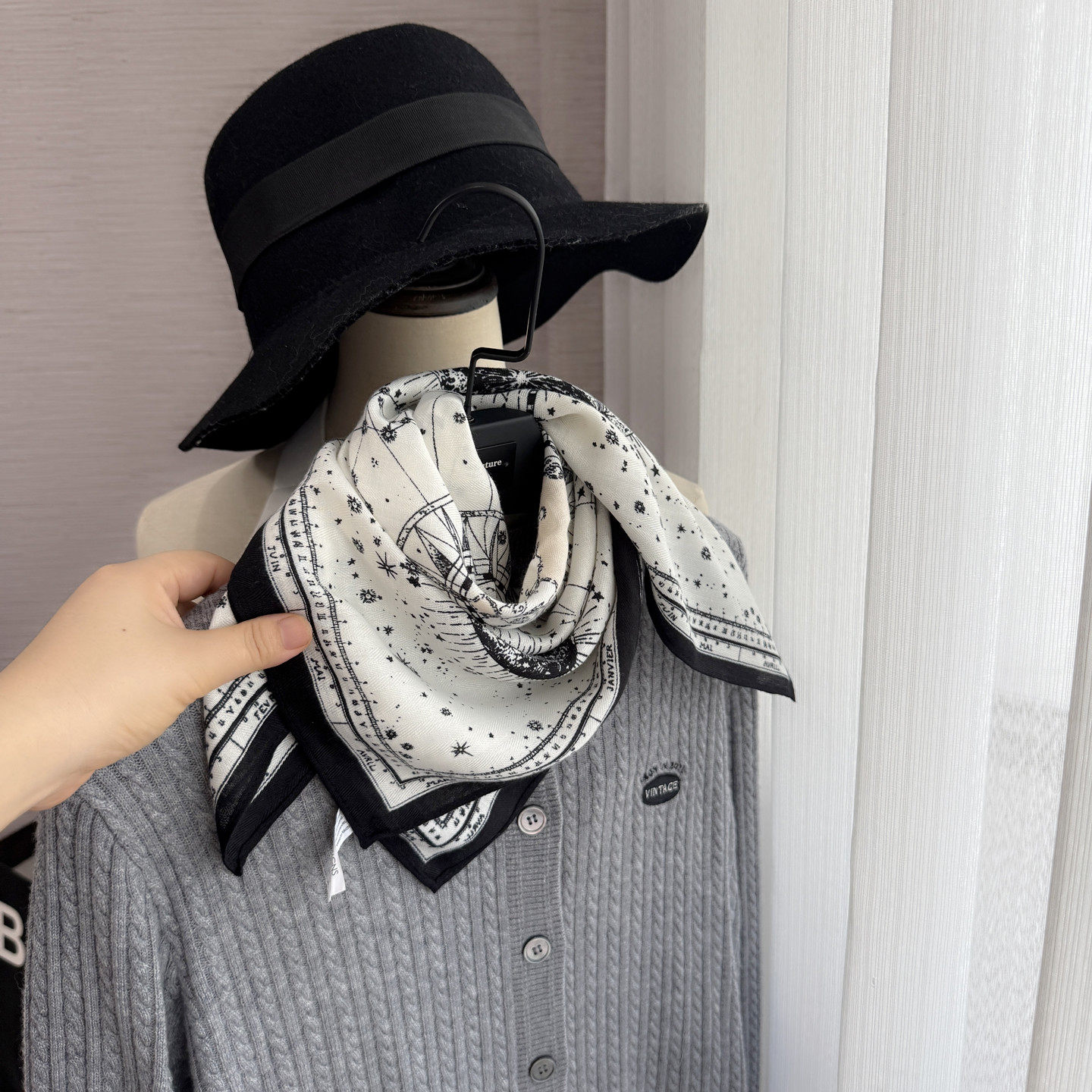 淘宝新款丝巾系脖高级感洋气围巾韩系黑米色柔软腰间小方巾女护颈保暖