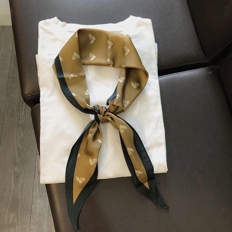 淘宝韩国洋气三角菱形薄款装饰围巾女丝巾搭配衬衫领巾咖色春秋夏新款