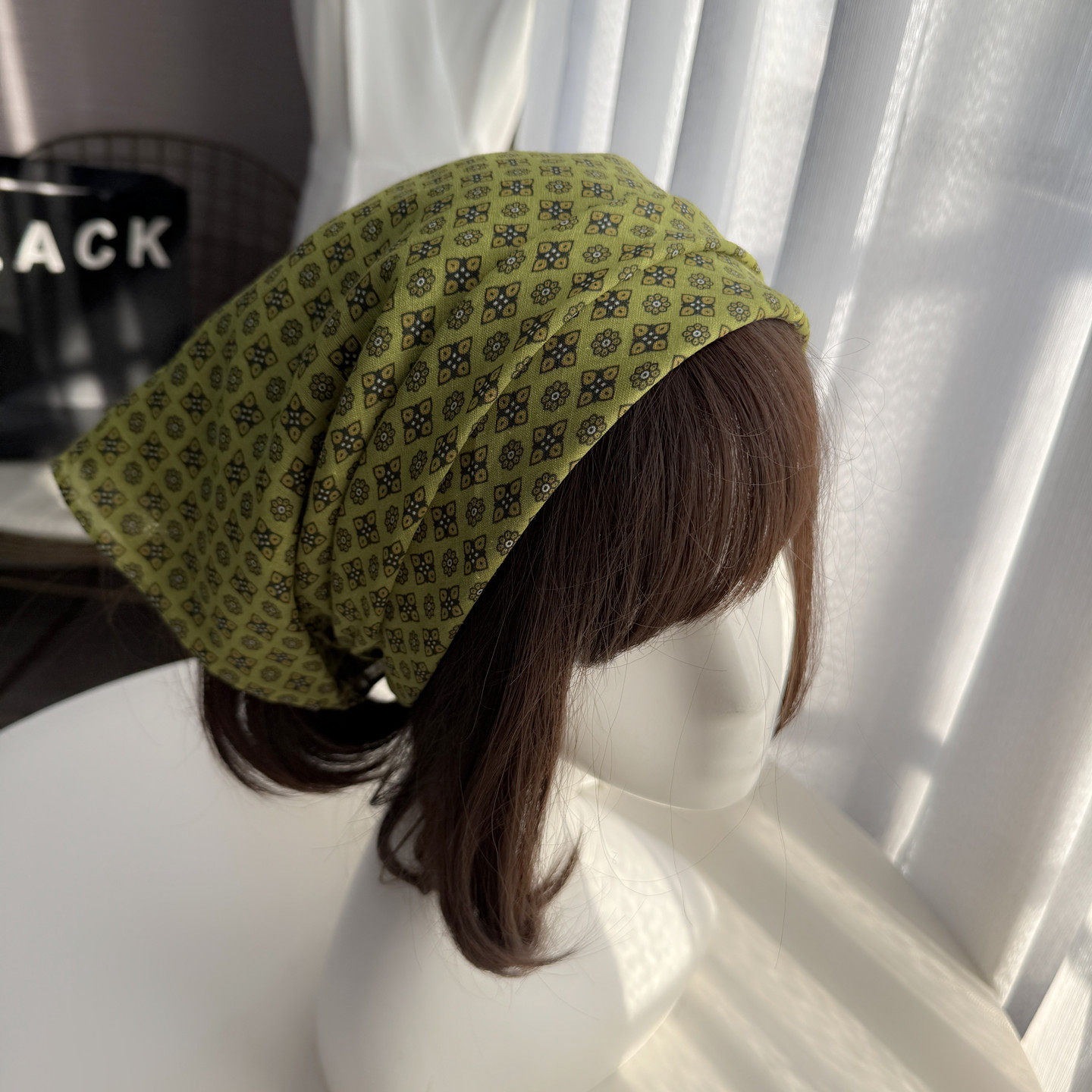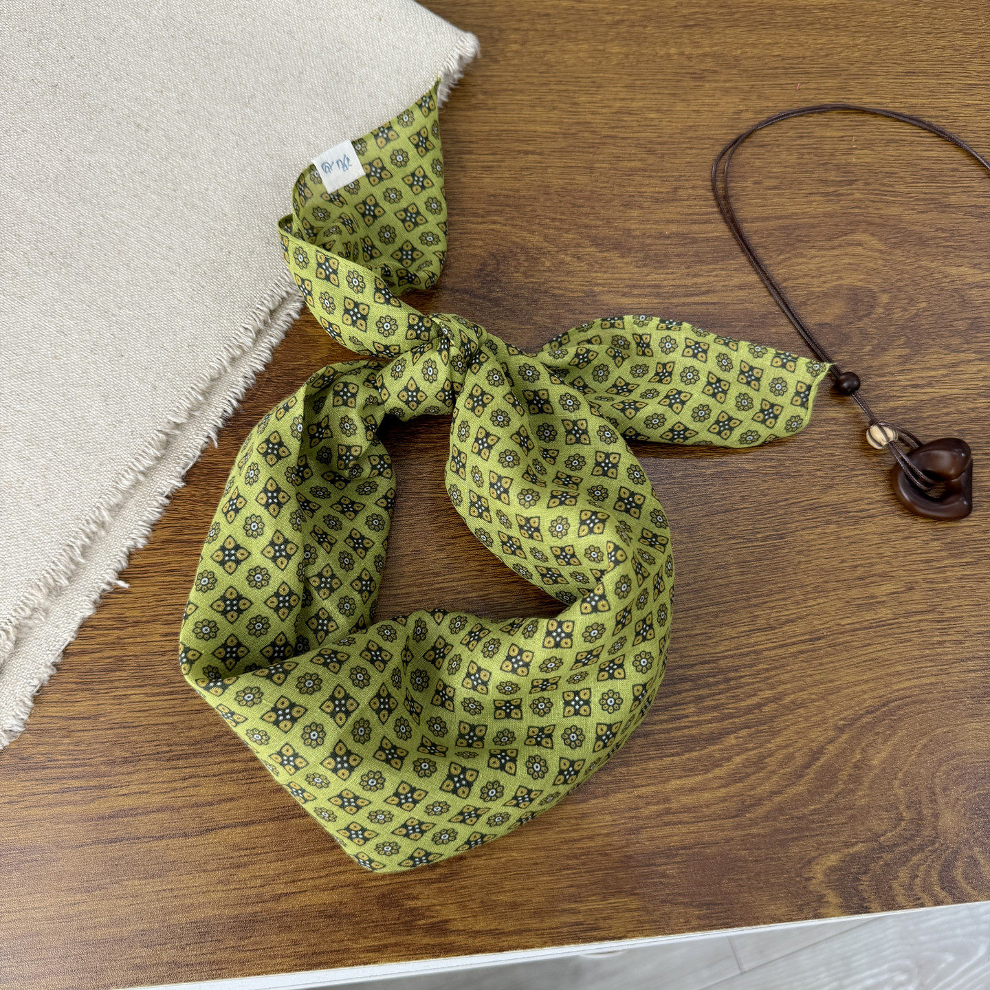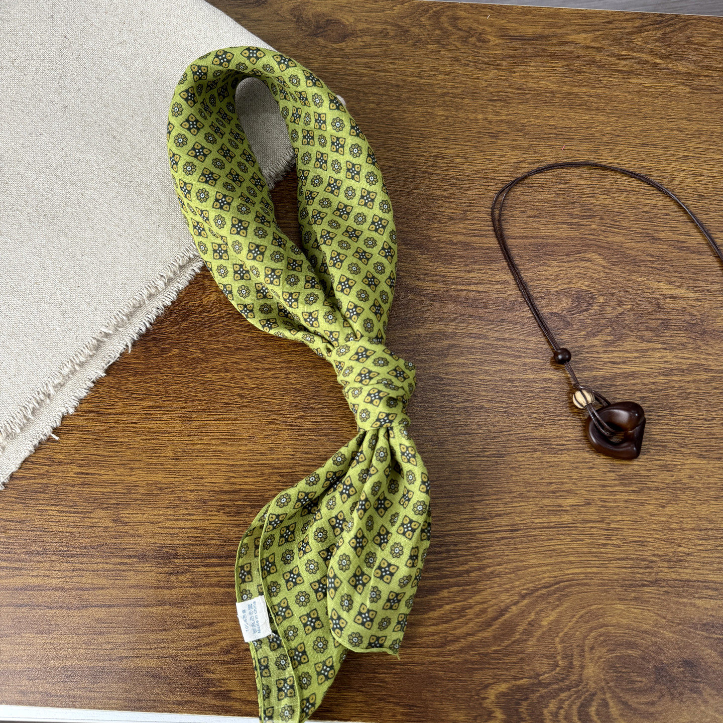 淘宝春季新款围巾苎麻绿色复古印花装饰丝巾系脖高级感小方巾女士头巾