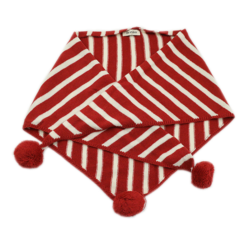 天猫高级慵懒风拼色条纹三角围巾女秋冬保暖披肩护颈学生毛球百搭围脖