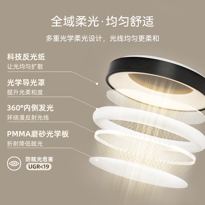 天lipro 超薄全光谱护眼客厅吸顶灯高亮智能简约卧室灯全屋护眼灯E2