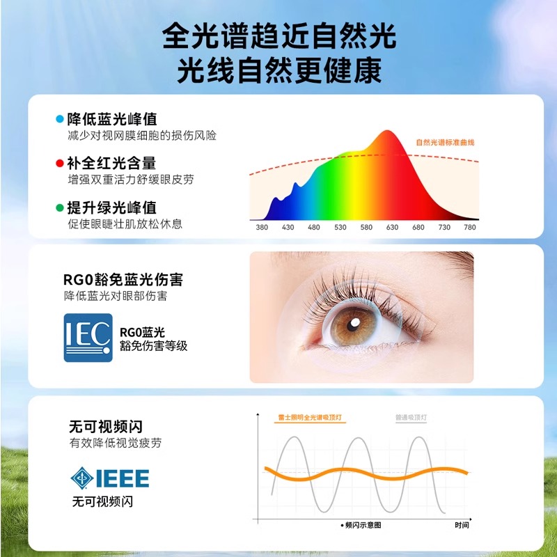 天欧普照明全光谱太阳日光LED护眼吸顶灯卧室书房灯具灯饰高显指WS