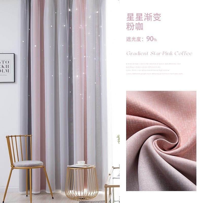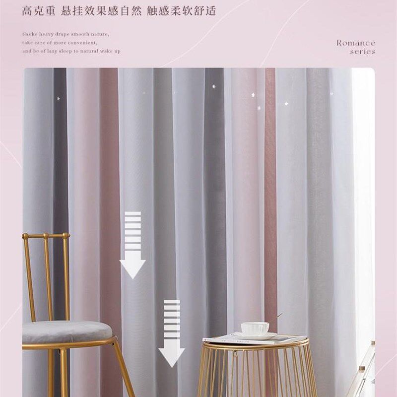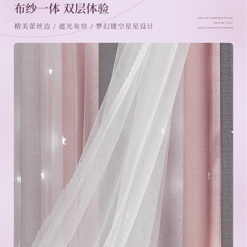 淘宝新款窗帘双层带纱双层带纱遮光窗帘卧室儿童房粉色公主风女孩少女