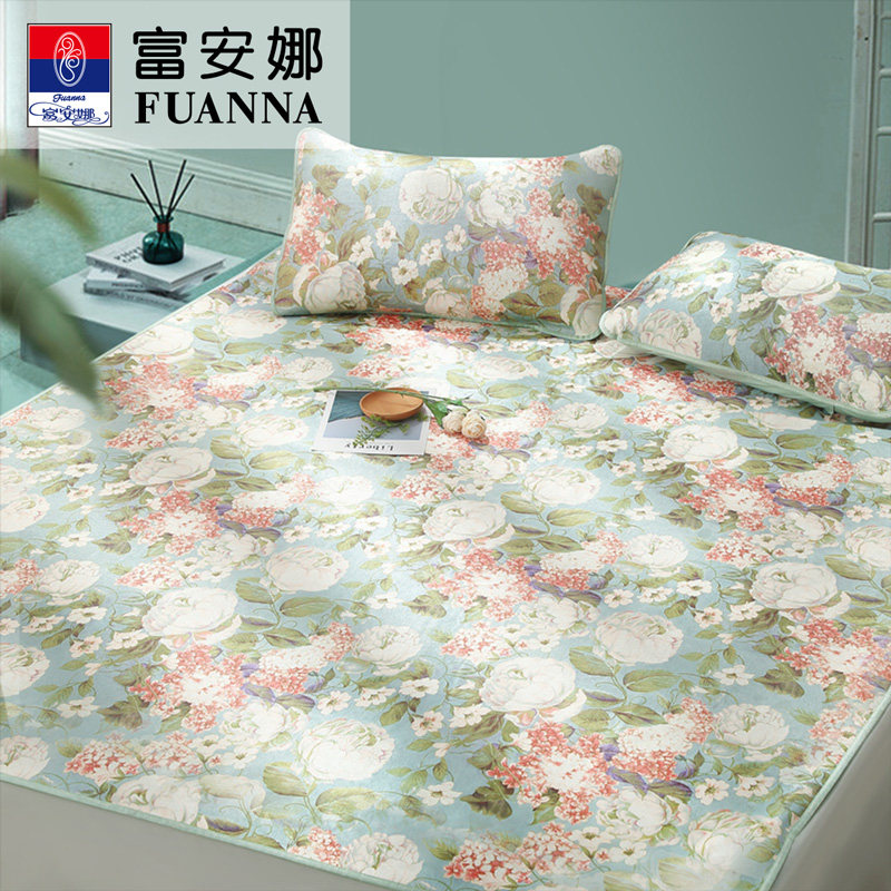 天猫富安娜冰丝凉席三件套夏季空调席二件套学生宿舍冰丝席软席子床品