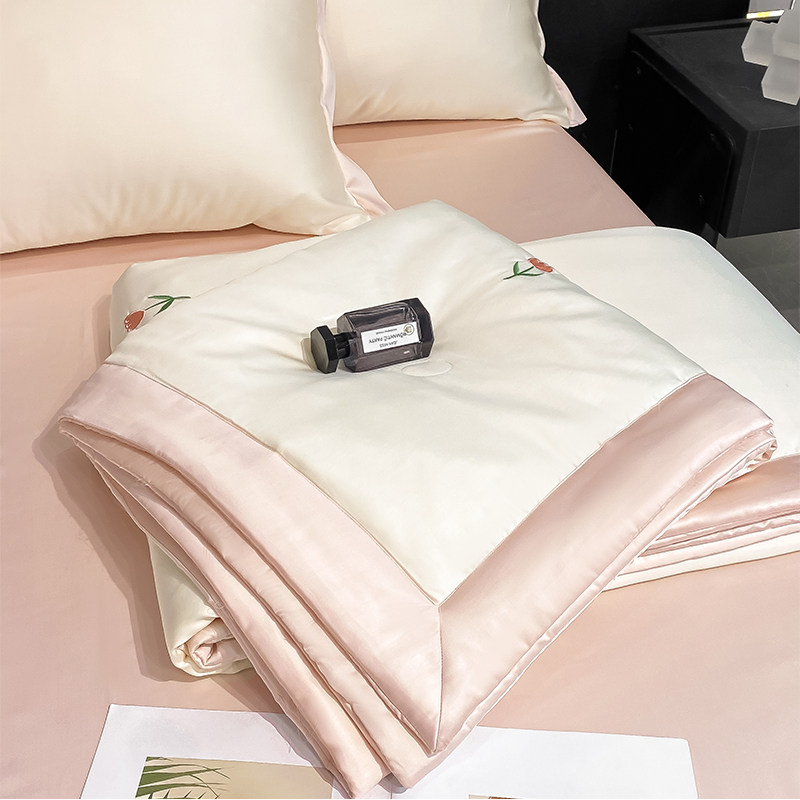 淘宝夏季冰丝夏被四件套轻奢水洗真丝凉感刺绣夏凉被空调薄被子可机洗