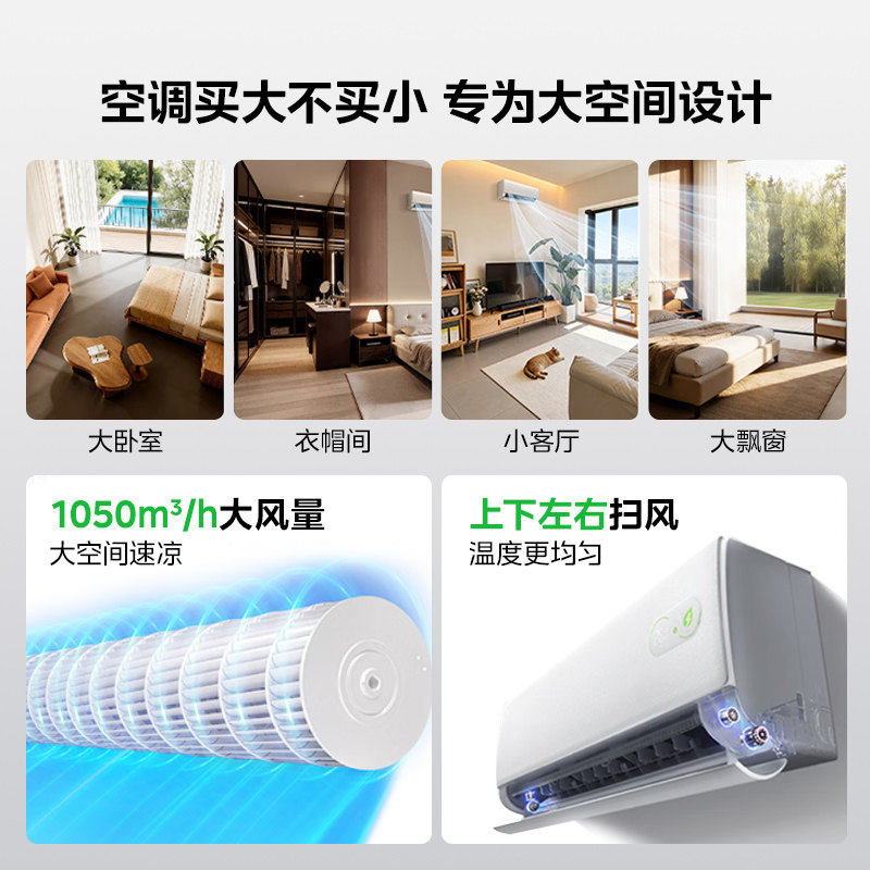 美的空调酷省电二代大1.5匹一级变频冷暖挂机,专为卧室设计,兼顾高效节能与舒适体验。搭载一级能效变频技术,APF值高达5.30,省电更环保,长期使用节省电费。支持快速制冷制热,30秒速冷、60秒速热,四季恒温守护。内置ECO节能模式,智能调控运行状态,夜间使用更安静低至18分贝。配备第四代自清洁技术,有效抑菌防霉,吹出健康新风。2匹强劲动力适配大空间,循环风量更大,全屋均匀送风。官方旗舰店正品保障,享全国联保与贴心售后。简约时尚外观,融入现代家居,是品质生活的理想之选。