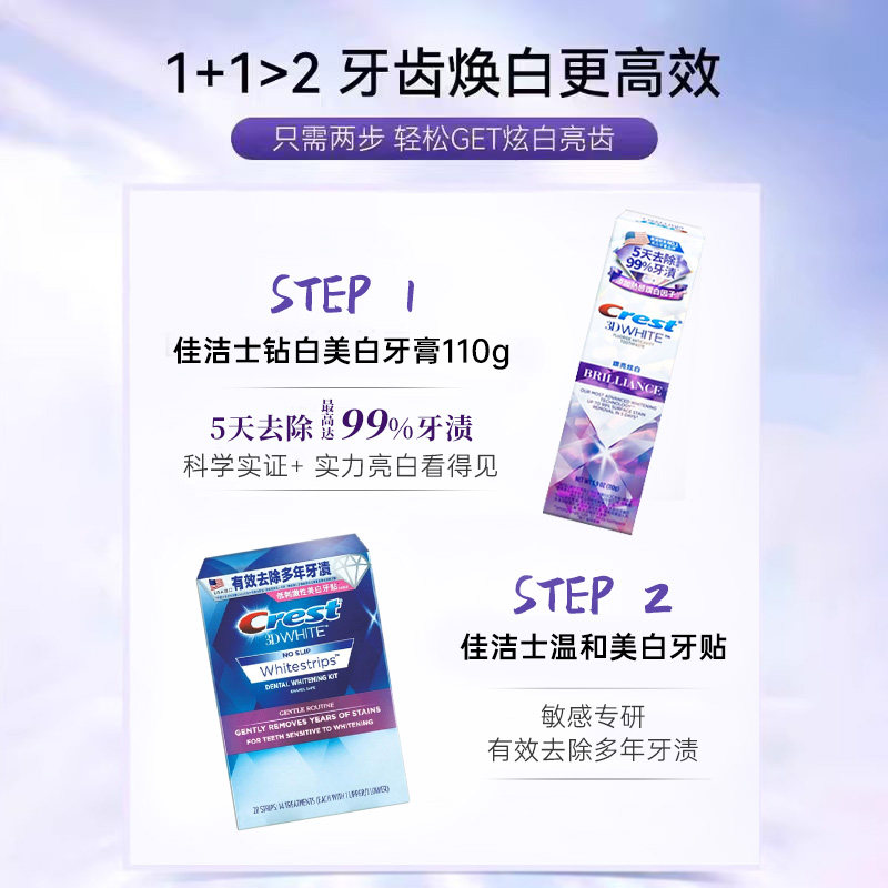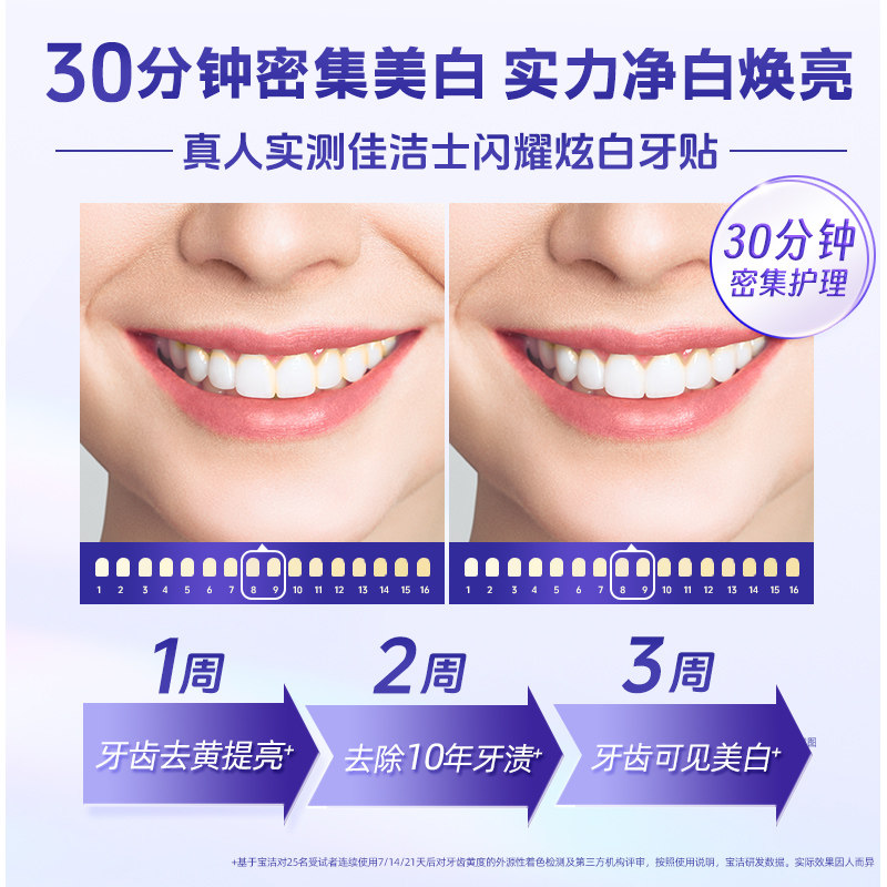 佳洁士美白牙贴闪耀炫白3d贴片洁白牙贴膜去黄去牙渍男女牙齿清洁