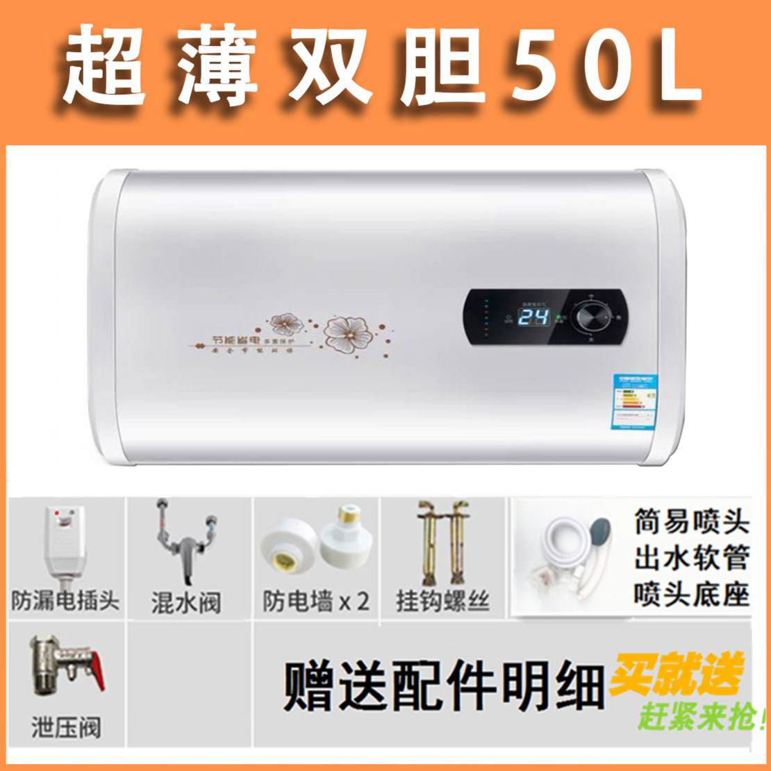 【新疆包邮】家用储水式电热水器,专为卫生间设计,提供扁桶与圆桶两种款式,满足不同安装空间需求。采用优质内胆,防腐耐用,加热迅速,保温效果佳,节能省电。配备智能温控系统,精准调节水温,使用更安全舒适。核心“出水断电”技术,洗浴时自动切断电源,杜绝漏电风险,守护全家安全。安装简便,支持多种墙体固定,适配主流家庭电路。现新疆地区包邮直达,售后无忧,让您在偏远地区也能享受便捷热水生活。无论是寒冷冬季还是日常洗漱,这款电热水器都是理想之选,品质保障,安心之选。
