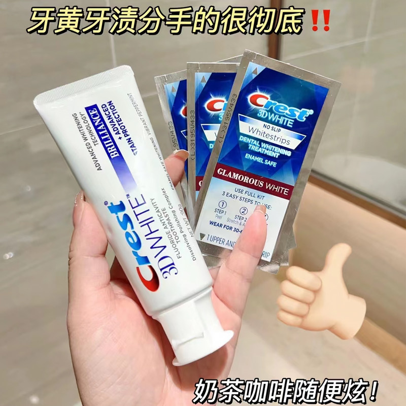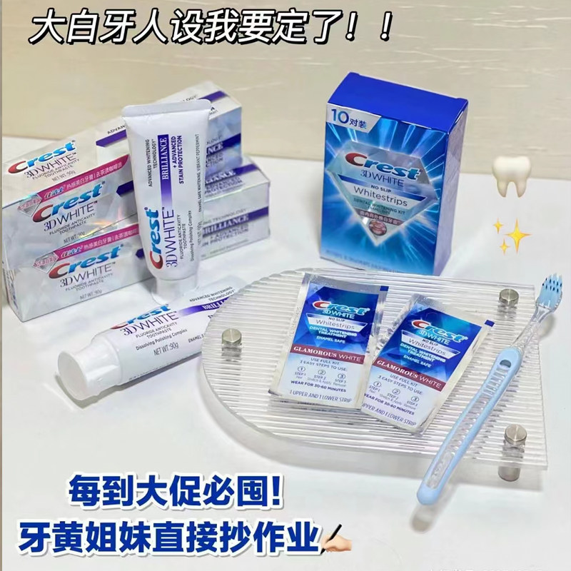 淘宝crest佳洁士美白牙贴3D闪耀炫白锁白热感去黄洁白14对28贴牙膜