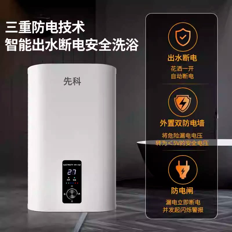 天猫先科竖立式家用电热水器出水断电速热储水式双胆挂墙壁卫生间洗澡