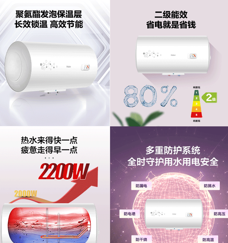 海尔电热水器HC3系列,专为家用、出租房等场景设计,提供50升与60升两种容量选择,满足日常洗澡需求。采用高效节能加热技术,快速升温,保温持久,有效降低能耗。内置专利防电墙技术,全程安全防护,杜绝漏电隐患,使用更安心。储水式设计,安装简便,适配多种卫生间布局,尤其适合空间有限的出租屋。内胆经高温烧结工艺处理,防腐耐用,延长使用寿命。智能温控系统精准调节水温,避免过热或忽冷忽热。外观简约大方,操作便捷,是家庭洗浴的理想之选。海尔品质保障,安全、节能、耐用兼具,提升居家洗浴体验。