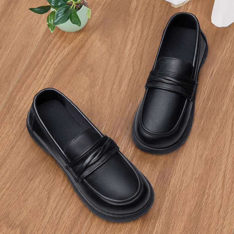 足力健女鞋旗舰店中老年妈妈鞋舒适软底软面乐福鞋小皮鞋春一脚蹬