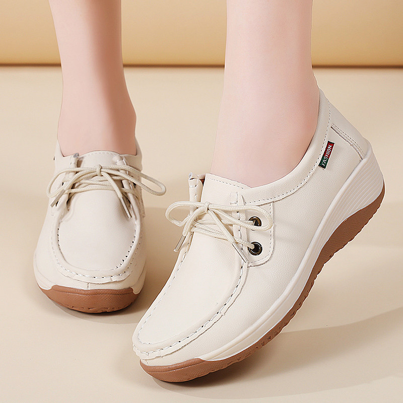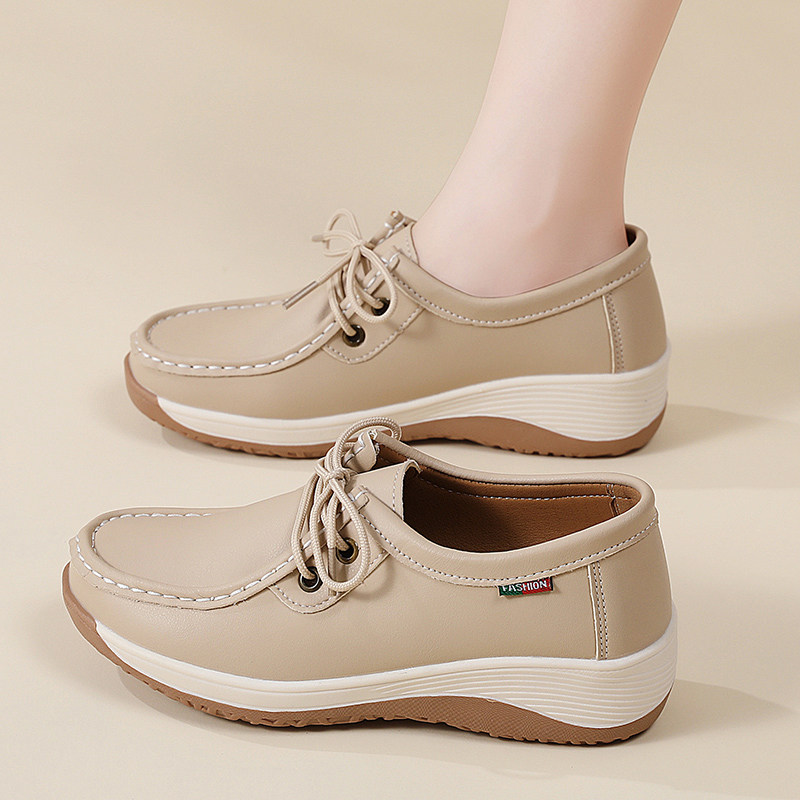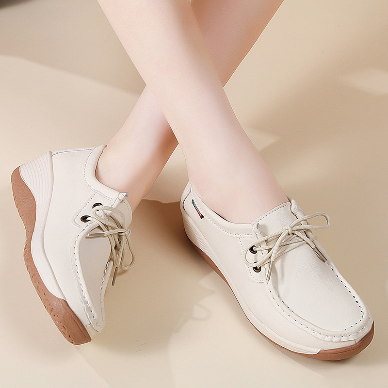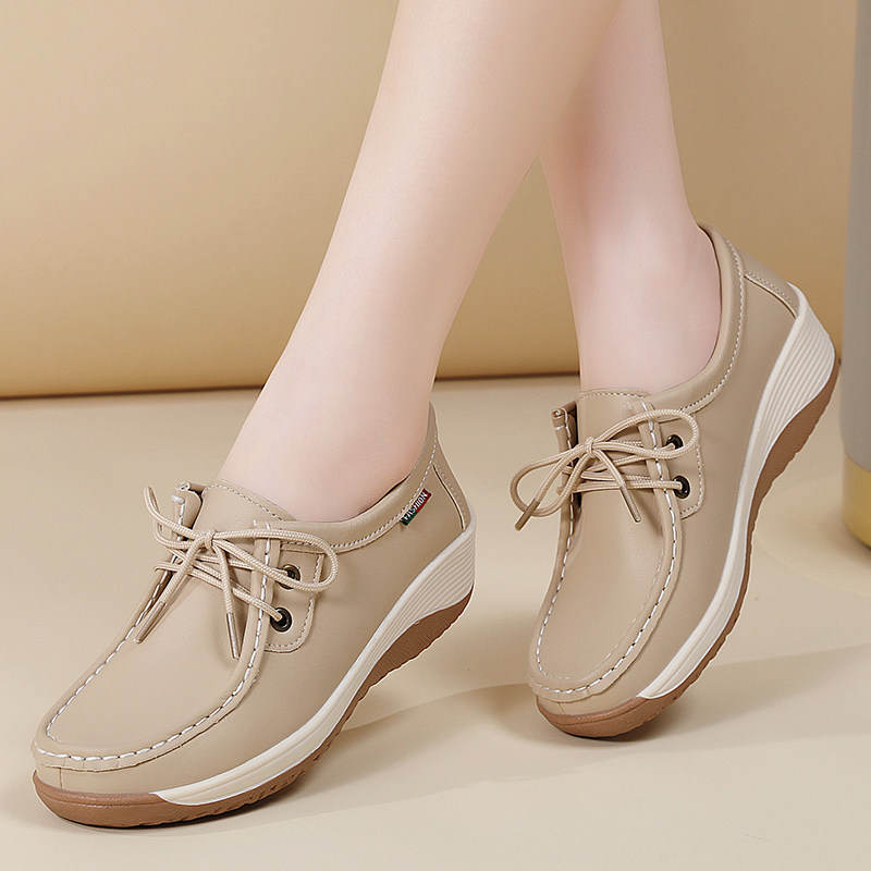 淘宝超软牛筋底厚底乐福鞋女2026新款真皮休闲鞋软底防滑中老年妈妈鞋