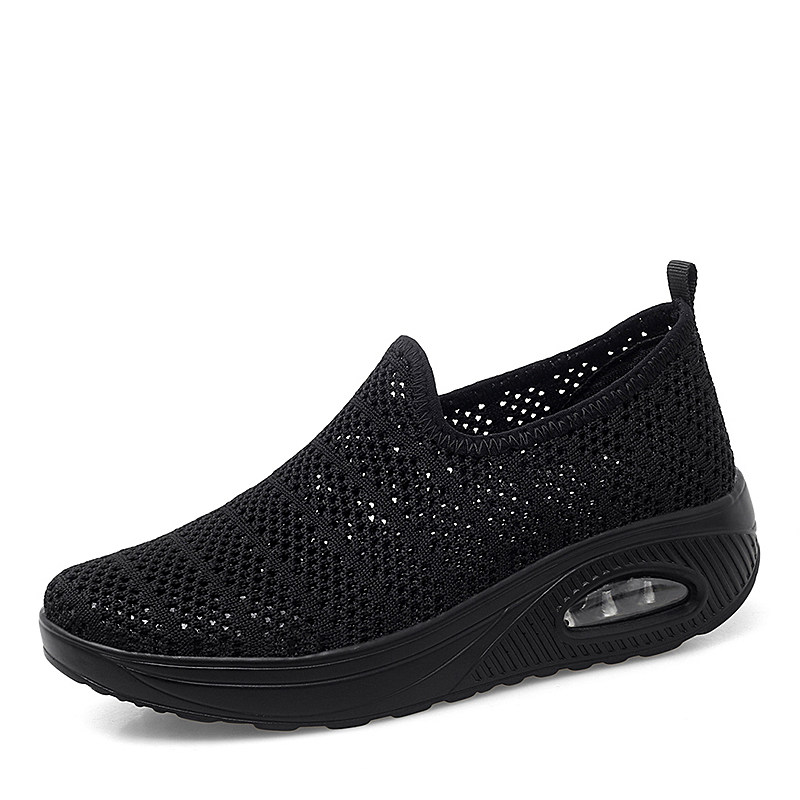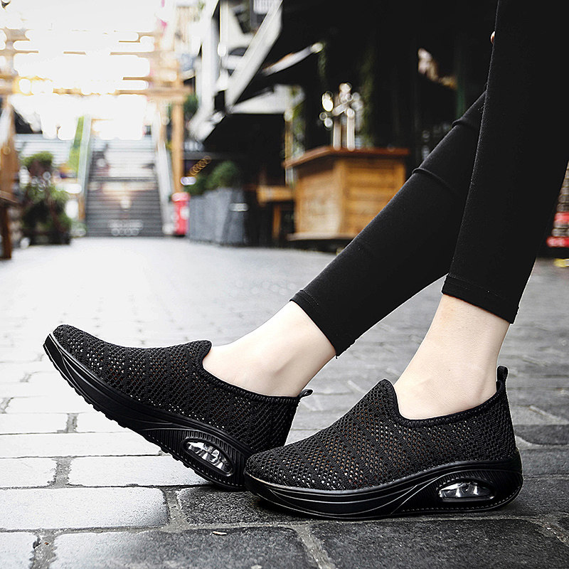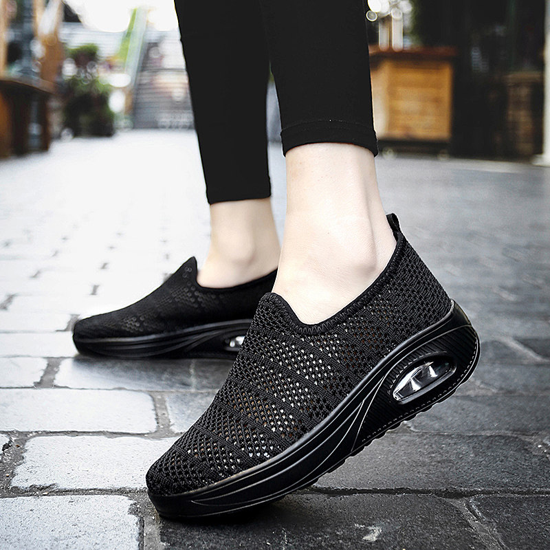 天猫全黑色网面透气网鞋厚底增高妈妈一脚蹬单鞋防滑舒适老北京布鞋女