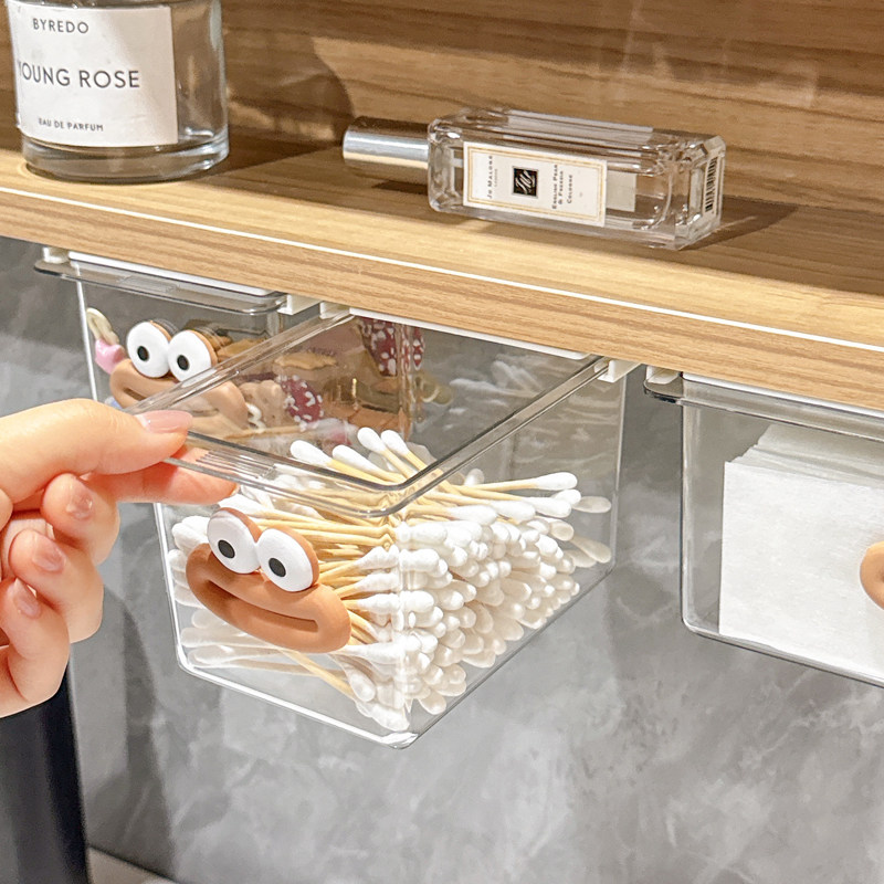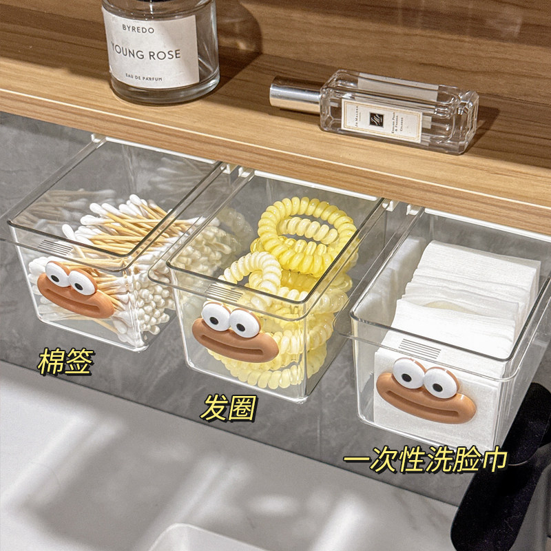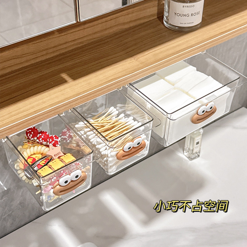 淘宝镜柜下抽屉式收纳盒卫生间化妆品卸妆棉口红棉签透明桌下置物架新