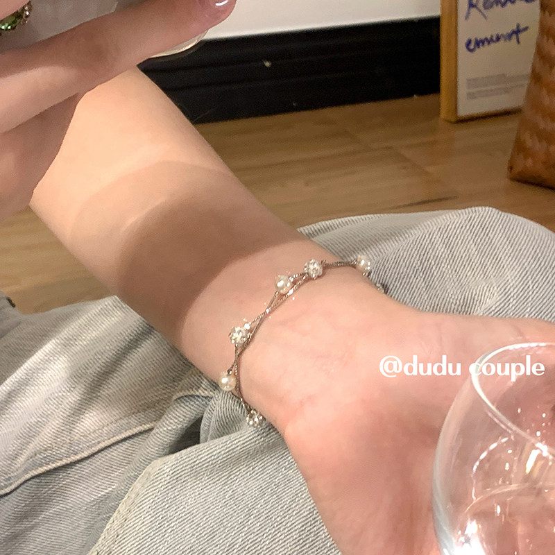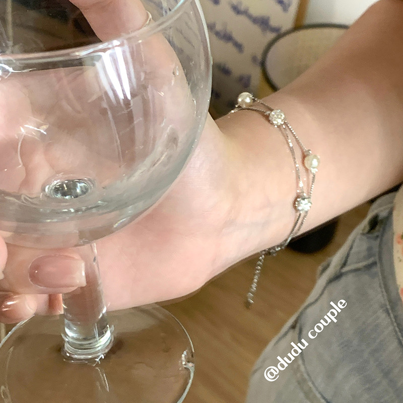 淘宝嘟嘟夫妇双层叠戴珍珠手链女2026新款高级感小众设计超闪镶钻手饰