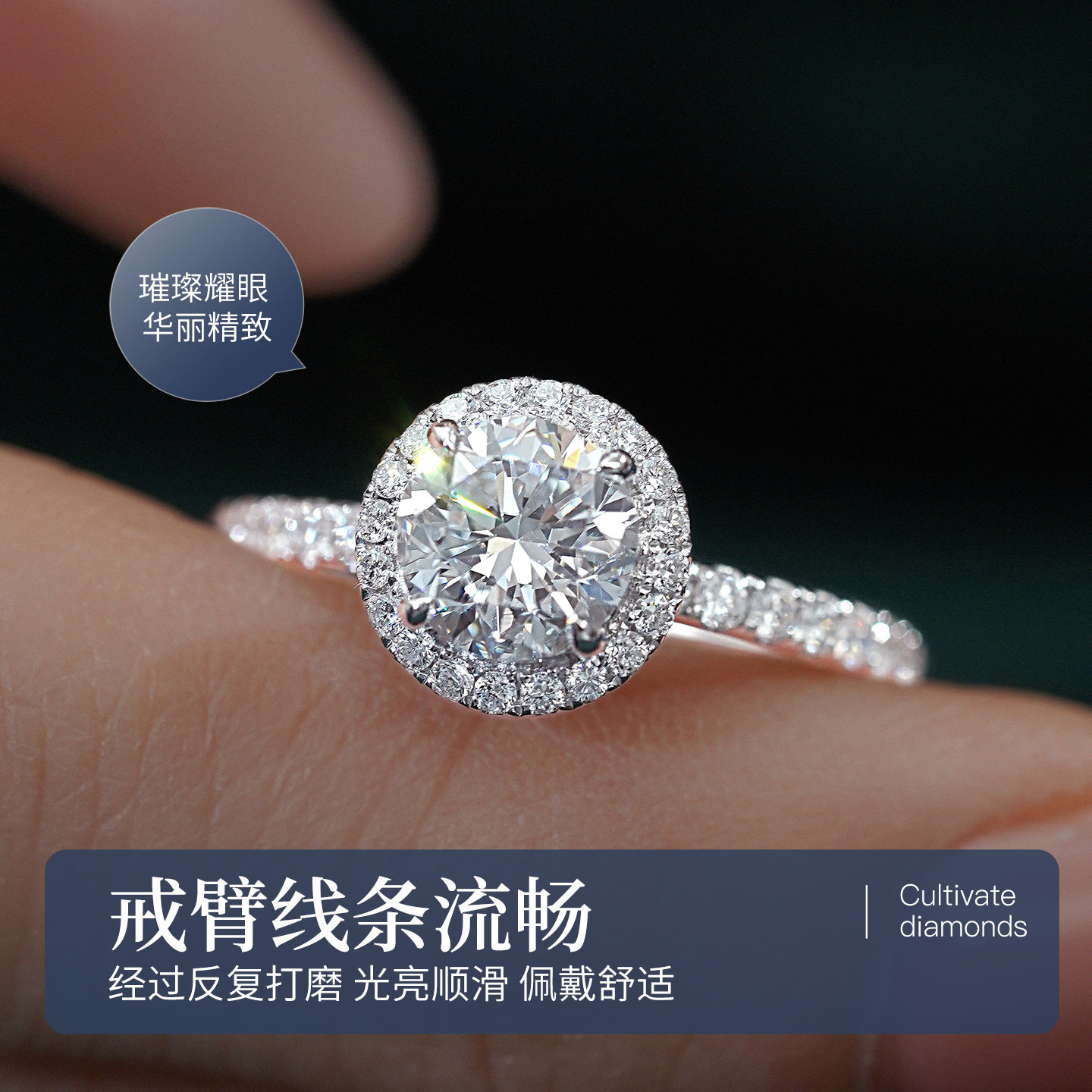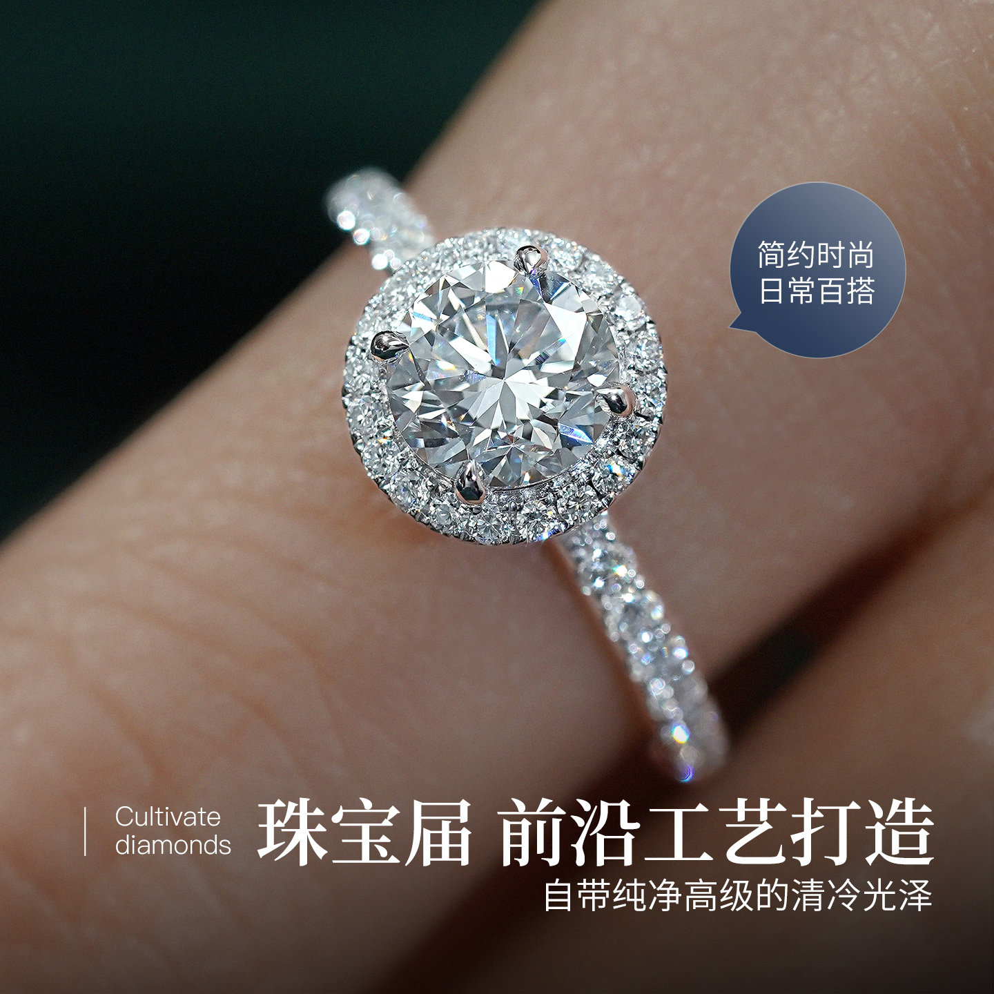 PT950铂金人工培育钻石戒指「The One」采用高品质人工培育钻石,环保可持续,火彩媲美天然钻石。主钻约1克拉,经典围镶设计,周围细密镶嵌小钻,璀璨夺目,尽显女性优雅气质。戒托选用PT950铂金,纯净坚韧,佩戴舒适且不易褪色,象征永恒爱意。整体设计简约大气,适合日常佩戴或重要场合,是订婚、纪念日或自我犒赏的理想之选。人工培育钻石在实验室中模拟天然形成条件,品质稳定,价格更亲民,兼顾美感与价值。「The One」寓意“唯一”,见证真挚情感,是现代女性独立与浪漫的完美表达。