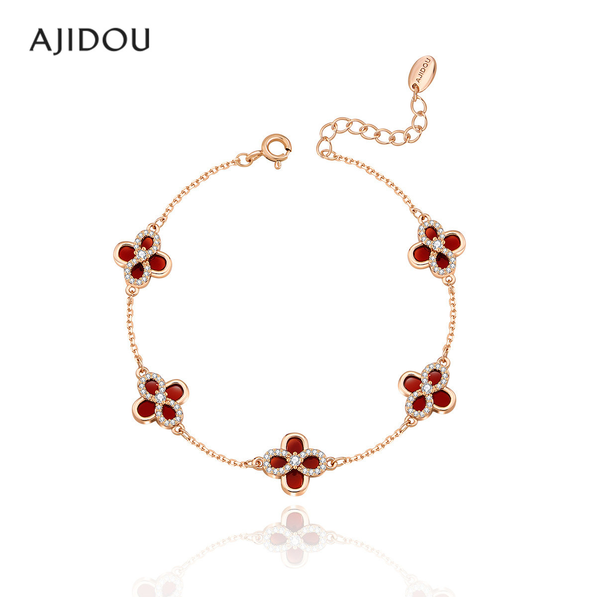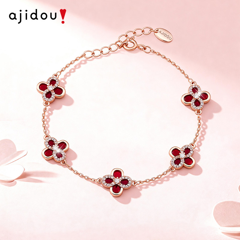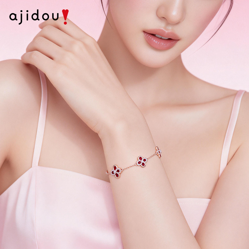 天猫AJIDOU阿吉豆手链轻奢女款幸运四叶草手串红色精致小众设计感手饰