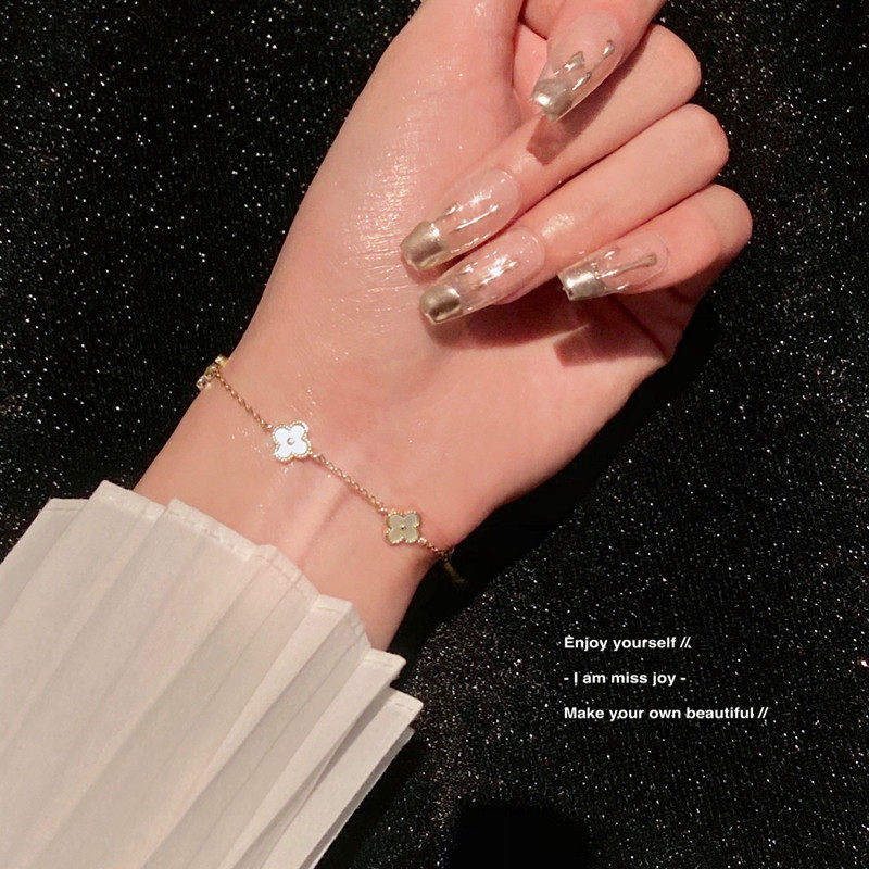 淘宝高级感仿白贝母四叶草手链轻奢小众精致不掉色手饰七夕送女友礼物