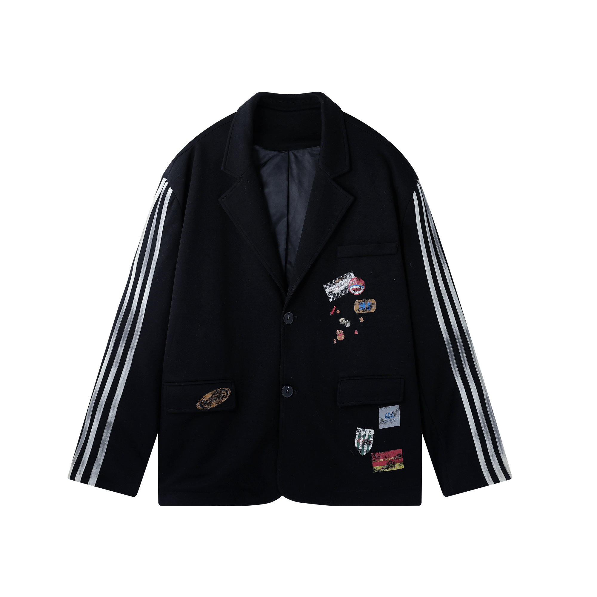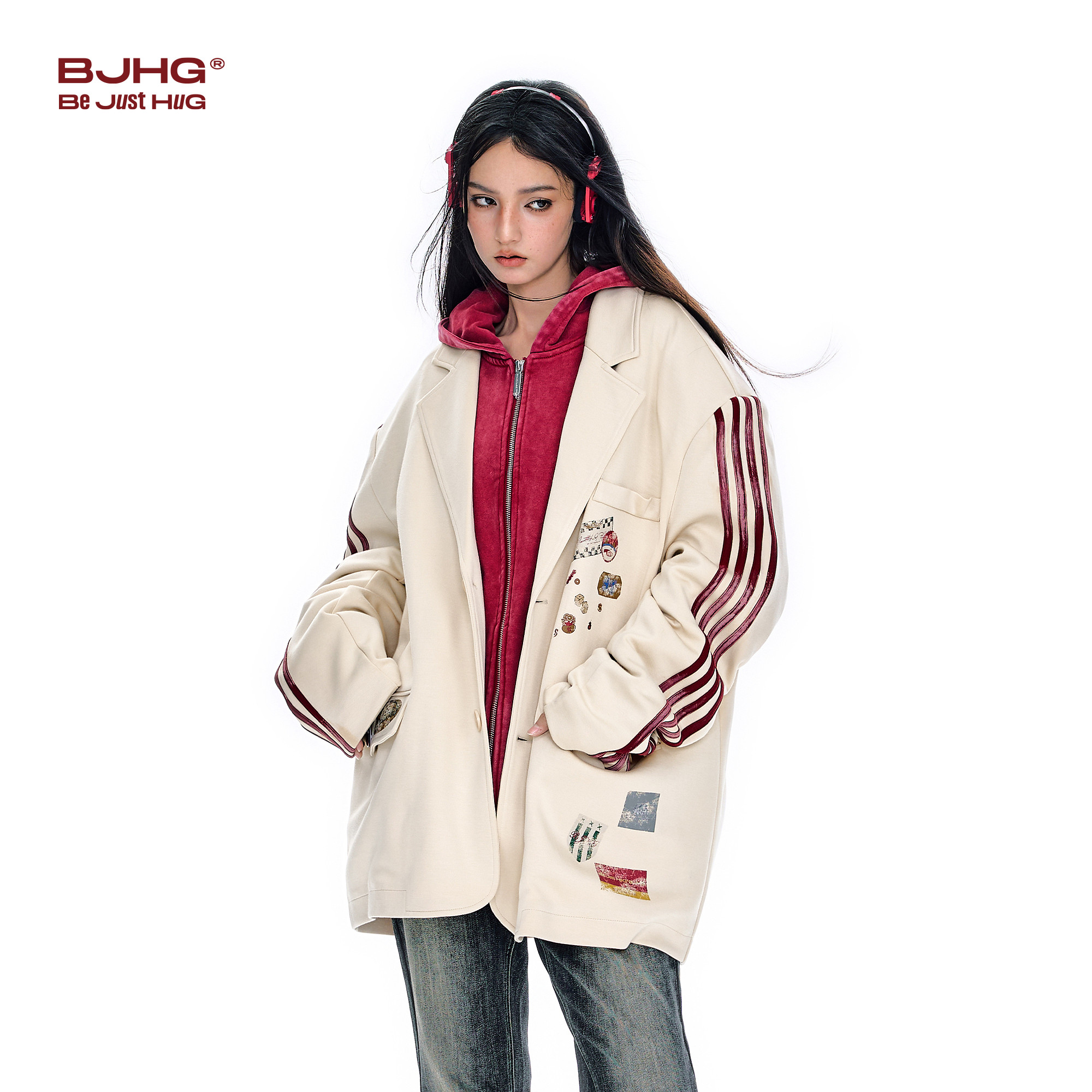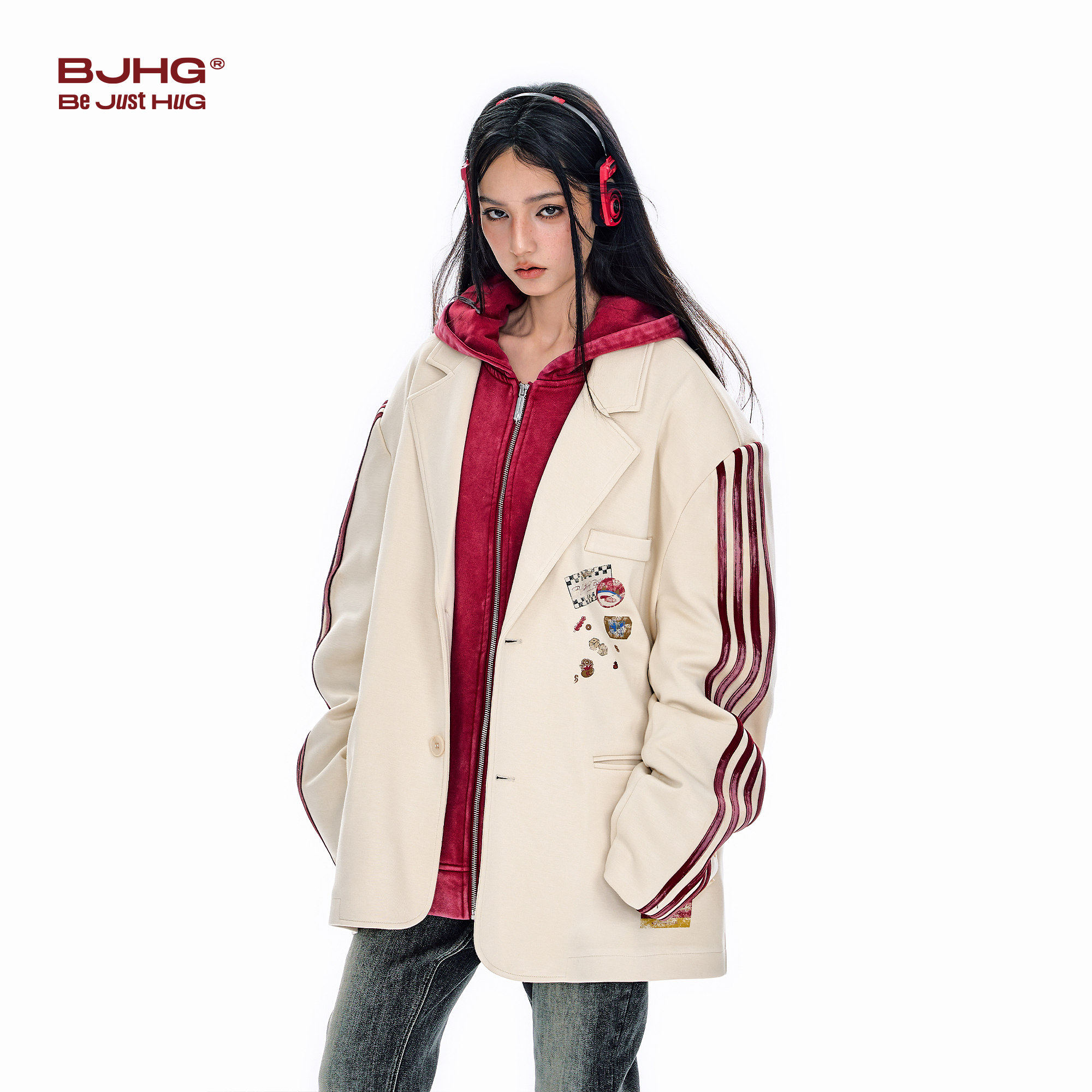 BJHG春季新款休闲西装外套,男女同款设计,融合拼接与做旧工艺,打造随性不羁的街头风格。采用空气层面料,轻盈透气,兼具挺括感与舒适度,适合春日多变的气候。经典翻领剪裁,线条利落,搭配微宽松版型,轻松穿出慵懒 chic 感。袖口与下摆的细节处理彰显匠心,整体设计兼顾时尚与实穿性。无论是搭配牛仔裤还是休闲裤,都能轻松驾驭日常出行、约会或轻商务场合。BJHG以不拘一格的审美,诠释现代都市人群对自由与个性的追求,是春季衣橱不可或缺的百搭单品。