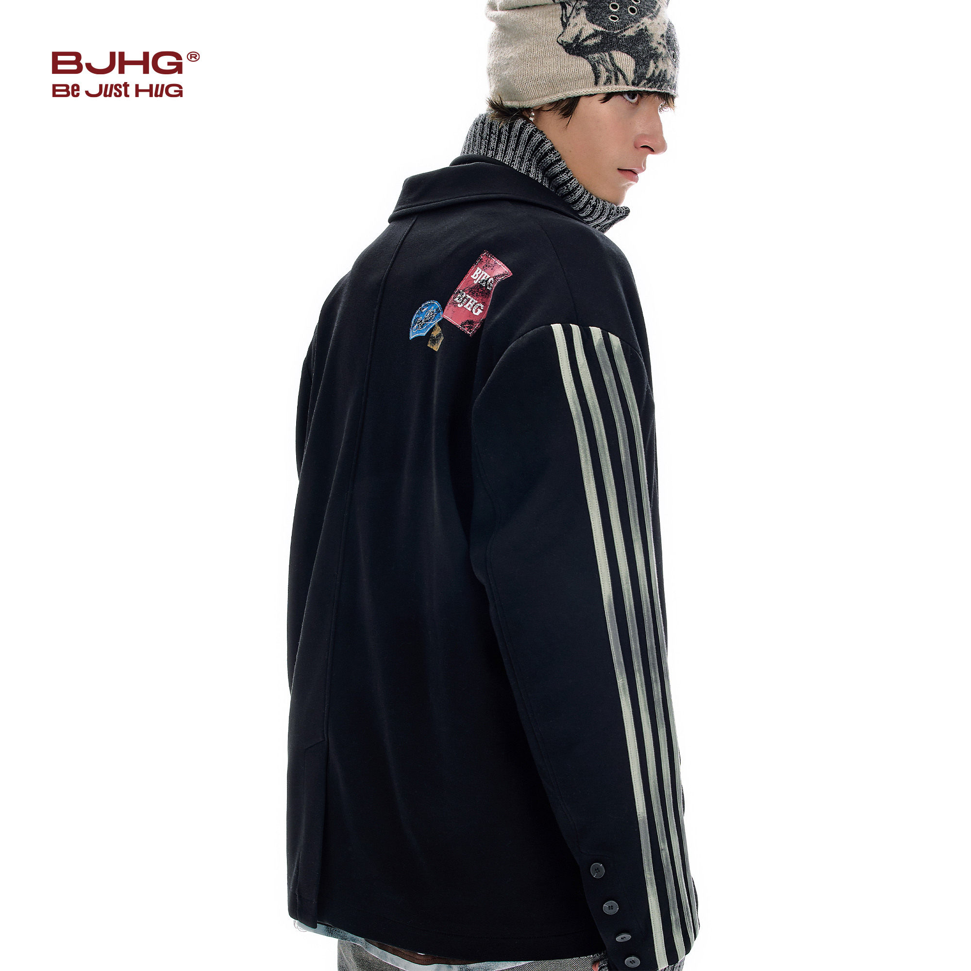 天猫BJHG不计后果休闲西装外套男款春季新款拼接做旧空气层翻领夹克女