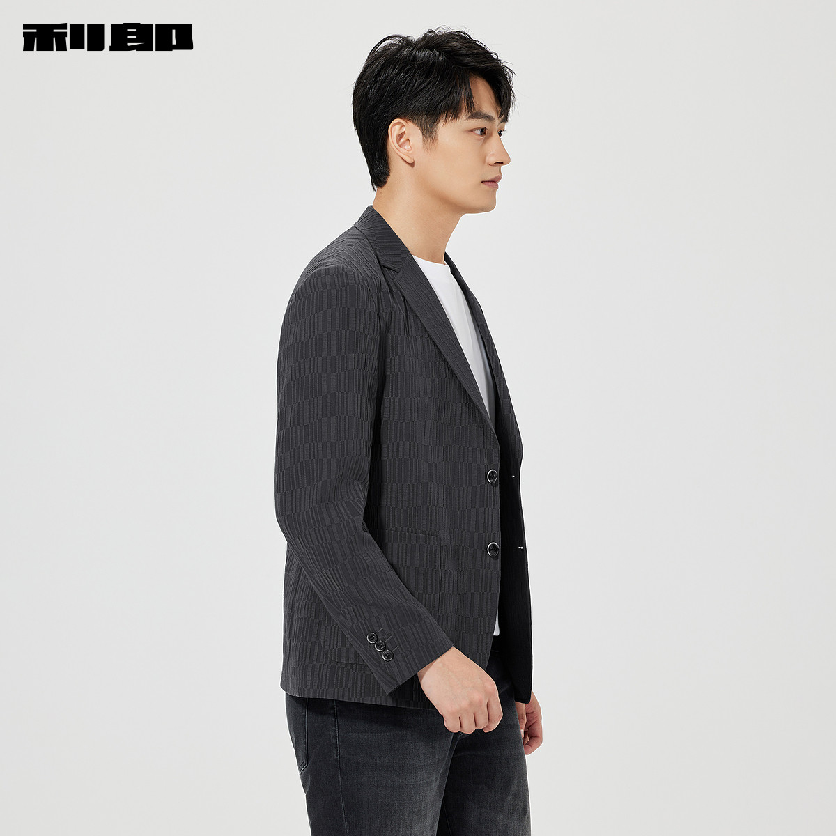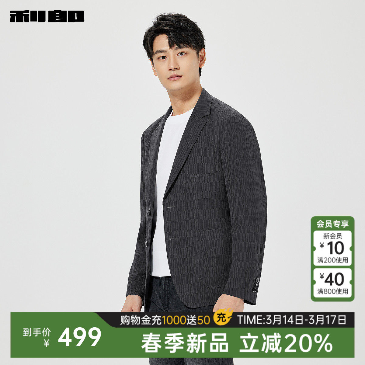 天猫利郎官方 商务休闲西服男士肌理提花春季新款男装修身西装外套男
