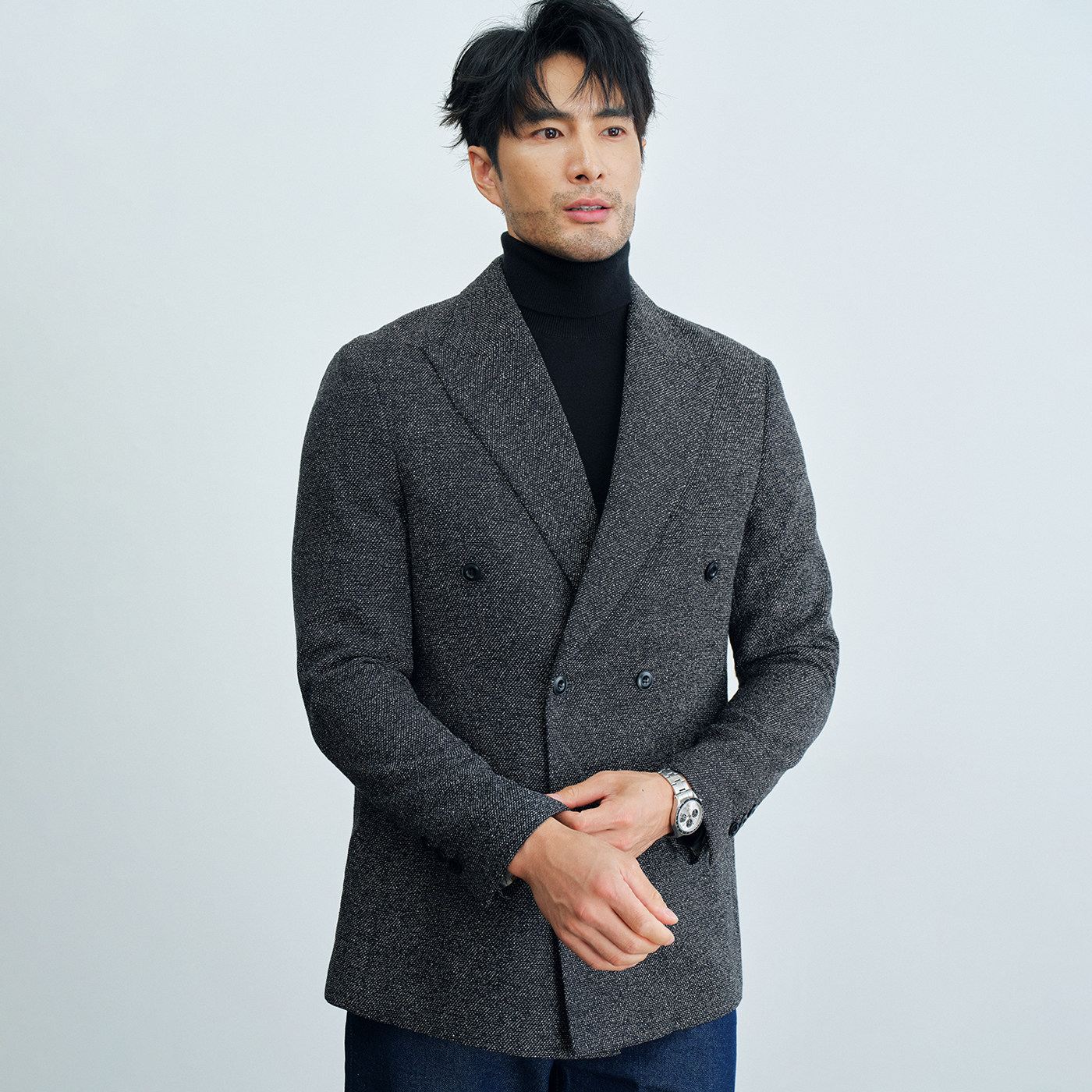 这款老钱风雅致绅士花纱肌理设计枪驳领灰色双排扣西服外套,融合经典与现代美学,展现低调奢华的英伦格调。采用细腻花纱面料,肌理丰富,质感高级,灰色基调沉稳内敛,彰显成熟男士的儒雅气质。枪驳领设计利落挺括,双排扣剪裁修身有型,兼顾正式与休闲场合。袖口与下摆细节考究,搭配微弹面料,穿着舒适自在。无论是商务洽谈还是周末聚会,都能轻松驾驭,诠释“老钱”阶层不张扬却独具品位的着装哲学,是都市绅士衣橱中不可或缺的时尚单品。