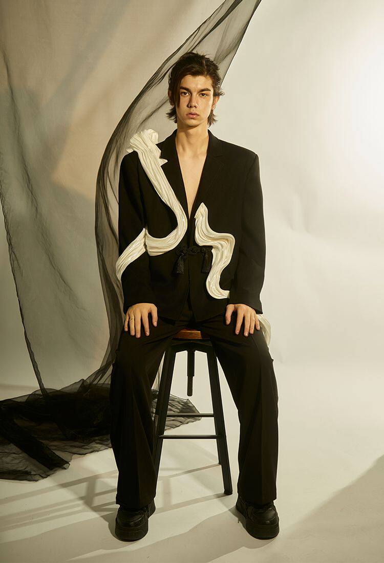 介尺JIECHI「浮光掠影」新中式盘扣休闲宽松西服外套,以东方美学为灵感,融合现代剪裁与传统盘扣工艺,呈现独特小众高级感。宽松廓形设计兼顾舒适与随性,精选优质面料,质感挺括又不失垂坠感。衣身线条简约流畅,细节处点缀手工盘扣,光影流转间尽显雅致气韵。无论是搭配休闲裤或中式长裤,皆能展现内敛而不失格调的穿搭风格。这款外套不仅是服饰,更是一种文化态度的表达,适合追求个性与品味的现代男性,在都市生活中演绎新中式风尚的浮光掠影。