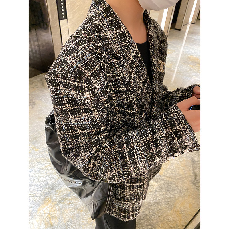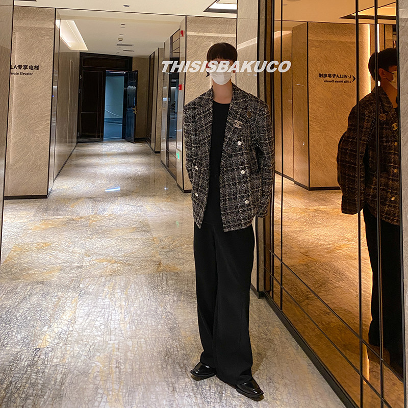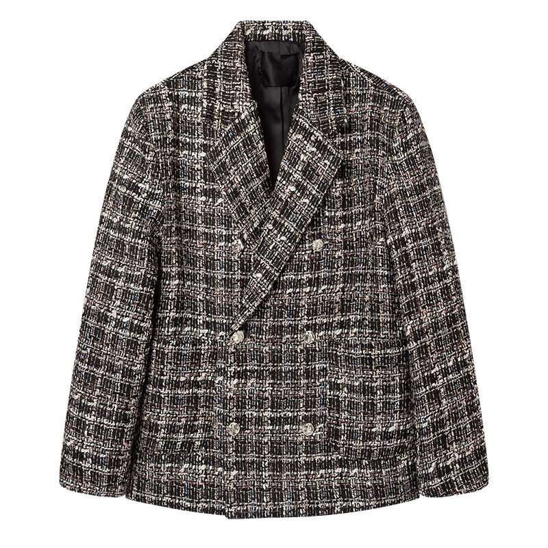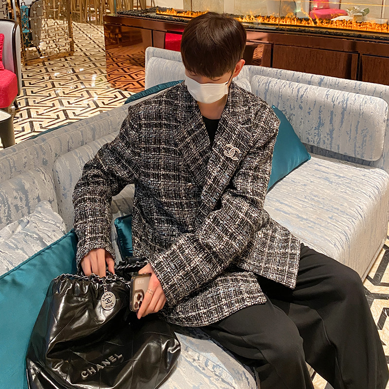 淘宝白口阳【巴黎来信】秋冬小香风西装粗花呢休闲宽松保暖西服上衣男