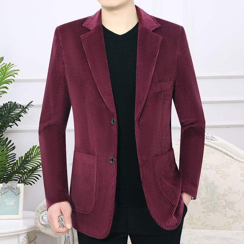 淘宝复古灯芯绒西装中老年男士条绒外套秋季新款男装纯棉休闲西服宽松