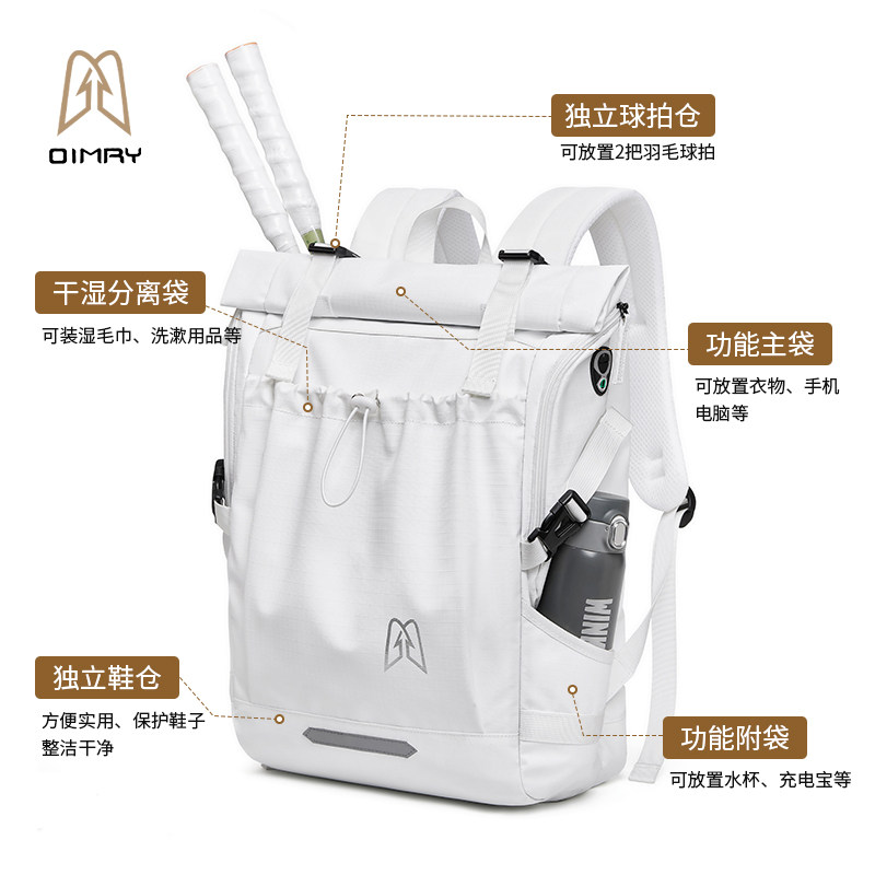 OIMRY(奥尼美)小众设计轻量化户外运动羽毛球双肩背包,专为热爱运动与追求个性的学生及户外爱好者打造。采用轻量耐磨材质,减轻负重感,同时具备大容量分层设计,可轻松容纳球拍、球鞋、衣物及日常用品。背部透气减压系统提升背负舒适度,侧边弹力网袋方便取放水壶或小物件。简约时尚的外观融合功能性细节,兼顾校园通勤与户外出行需求。无论是去球场、健身房还是短途旅行,OIMRY背包都以实用与美学平衡的设计,成为你随身装备的理想选择,展现独特运动风格。