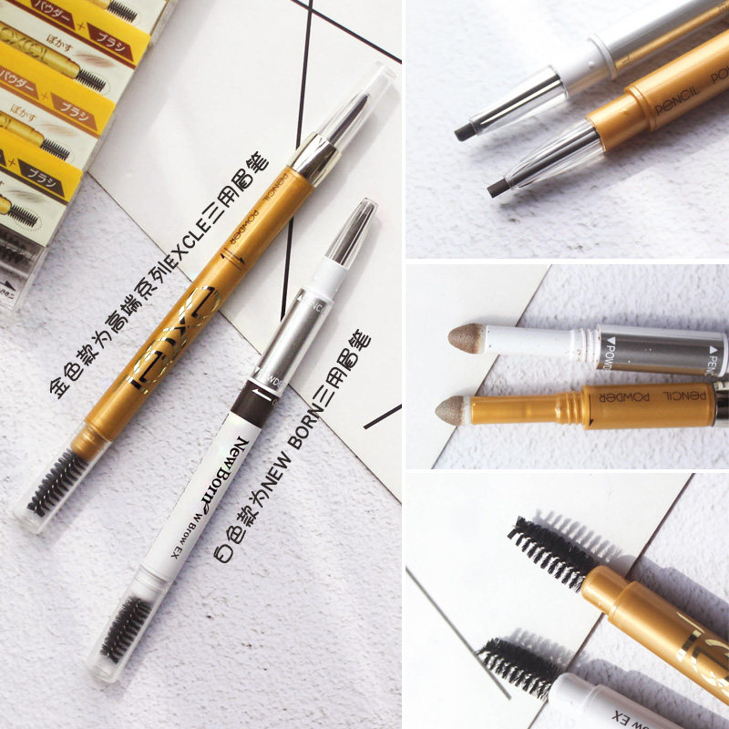 淘宝日本SANA EXCEL旋转双头眉笔+眉粉+眉刷三合一newborn防水防汗b11