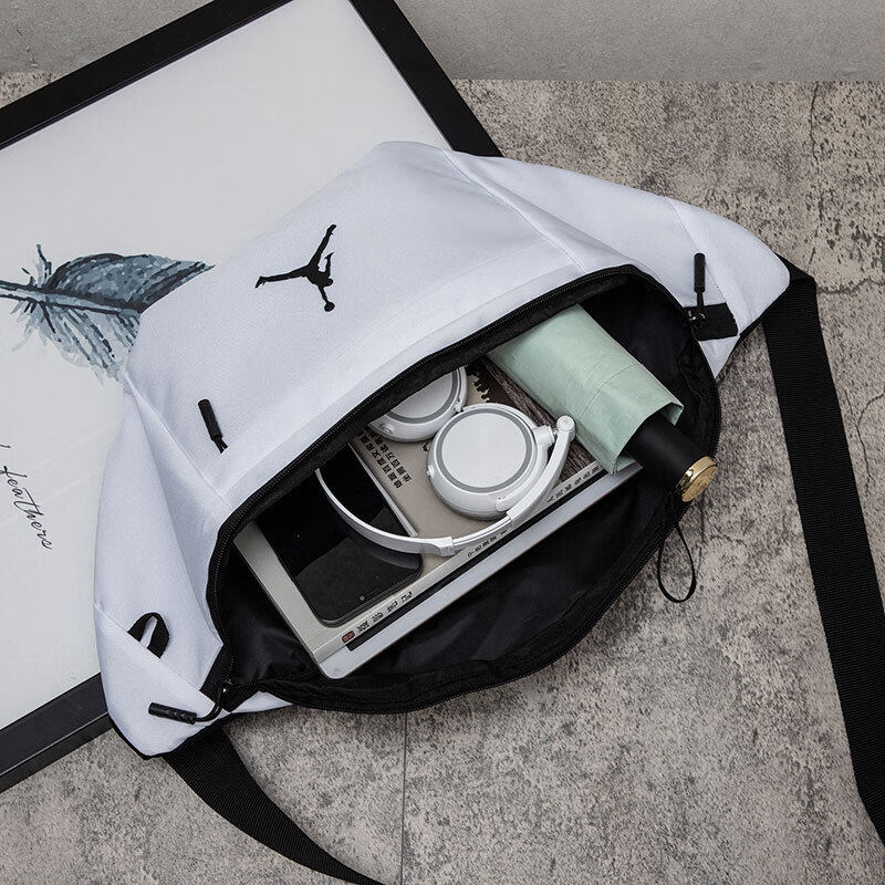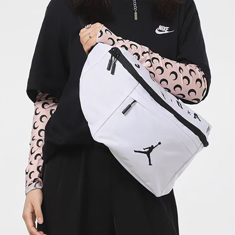 Jordan腰包耐克正品斜挎包(型号DR2919)是一款融合经典运动风格与现代休闲设计的时尚单品。采用高品质耐磨面料,轻便耐用,适合日常出行、运动或旅行使用。包身印有醒目Jumpman标志,彰显品牌辨识度。多隔层设计合理,主袋可容纳手机、钱包、钥匙等随身物品,前副袋便于快速取放小物件。可调节肩带支持斜挎、胸包或单肩多种背法,男女皆宜。简约黑、灰、军绿等配色百搭易衬,兼顾实用性与潮流感,是Jordan爱好者及追求个性穿搭人群的优选配件。