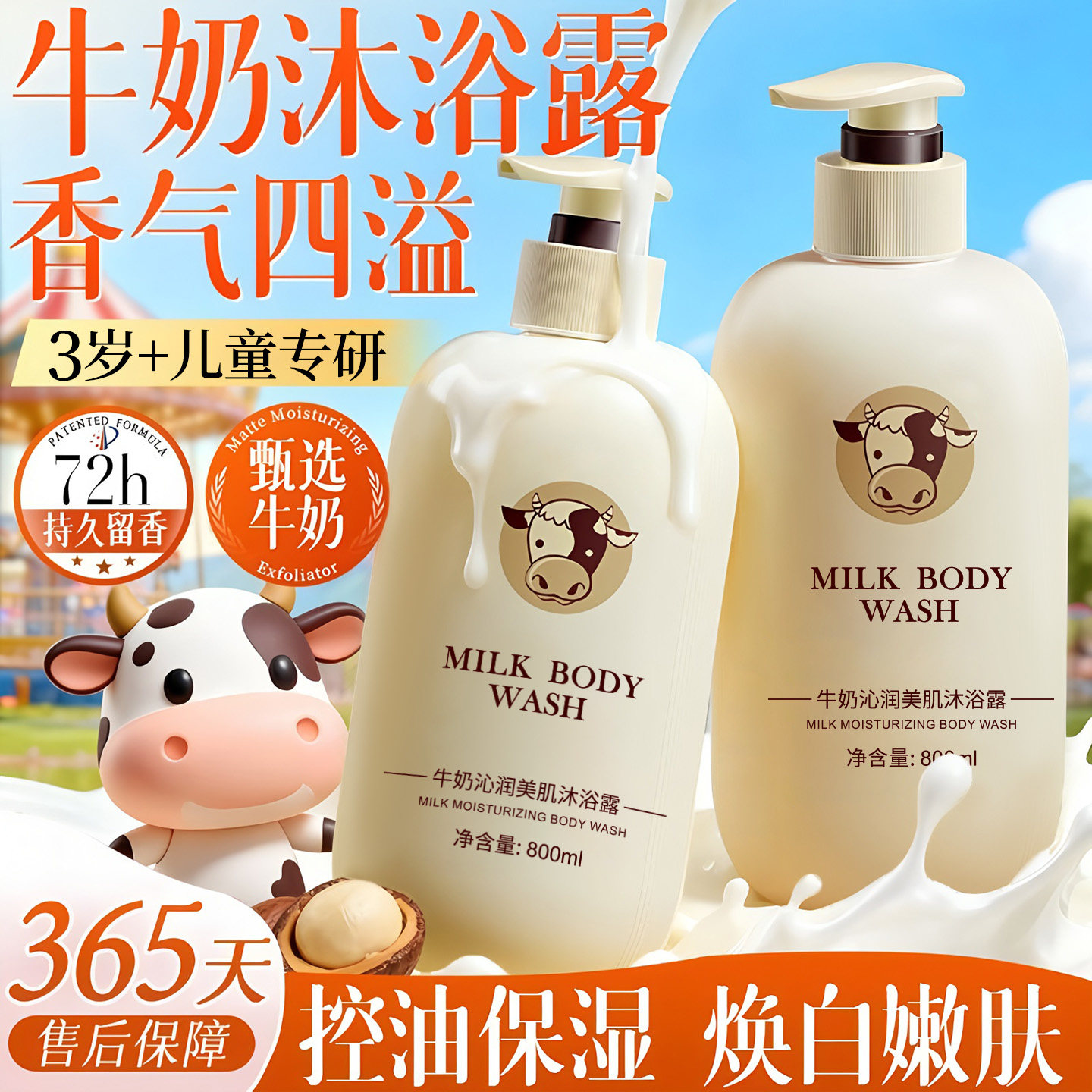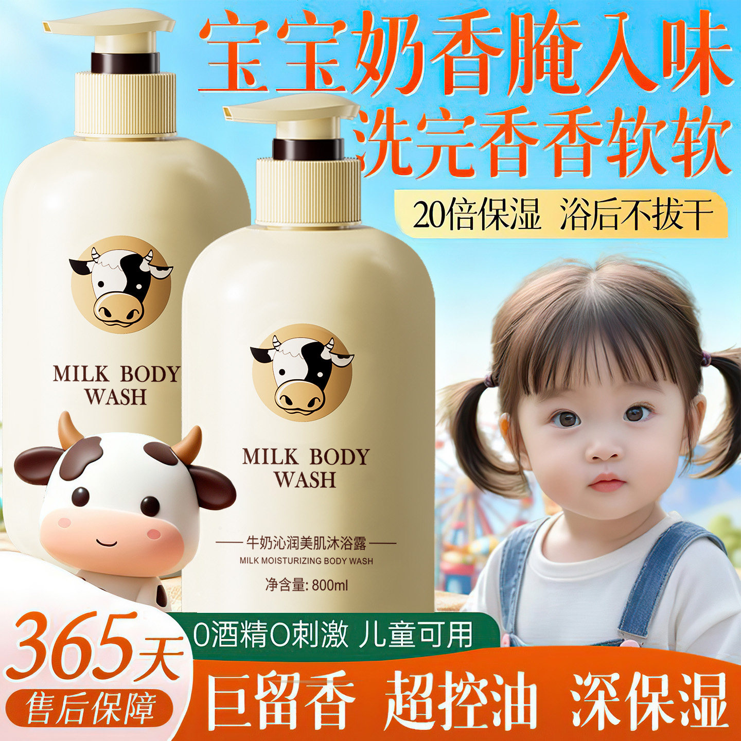 天猫牛奶3儿童沐浴露乳6到12岁宝宝10以上男童女童专用洗头发水二合一