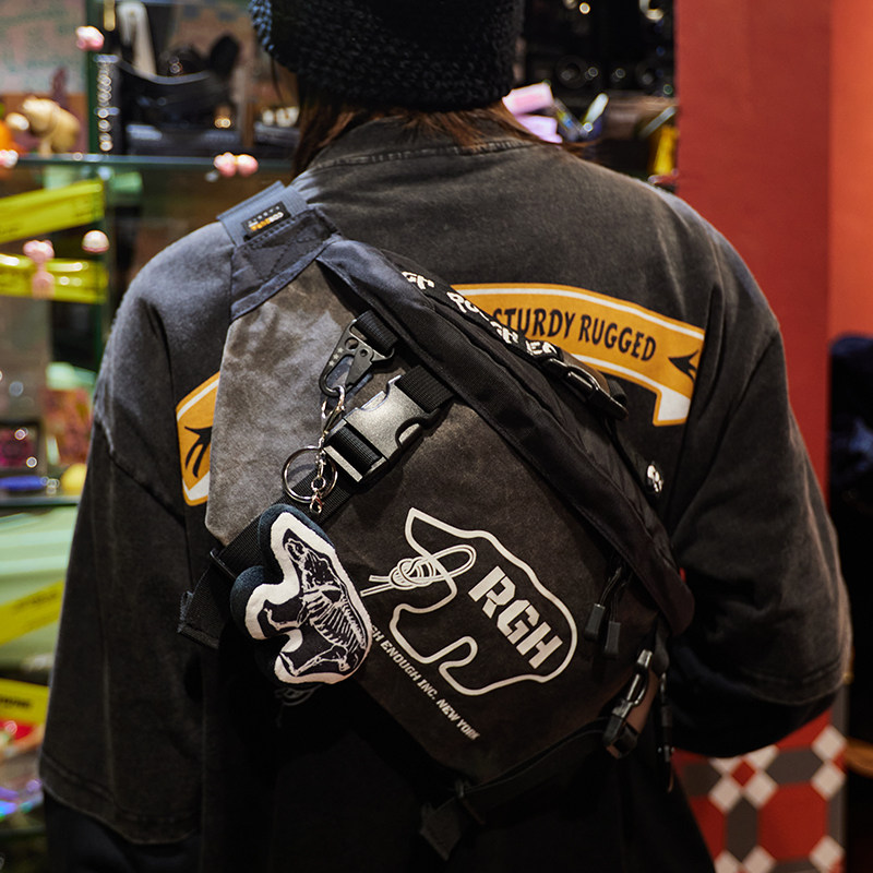 淘宝RGH 潮牌复古帆布斜挎包夜光腰包男女骑行包户外露营防水胸包运动