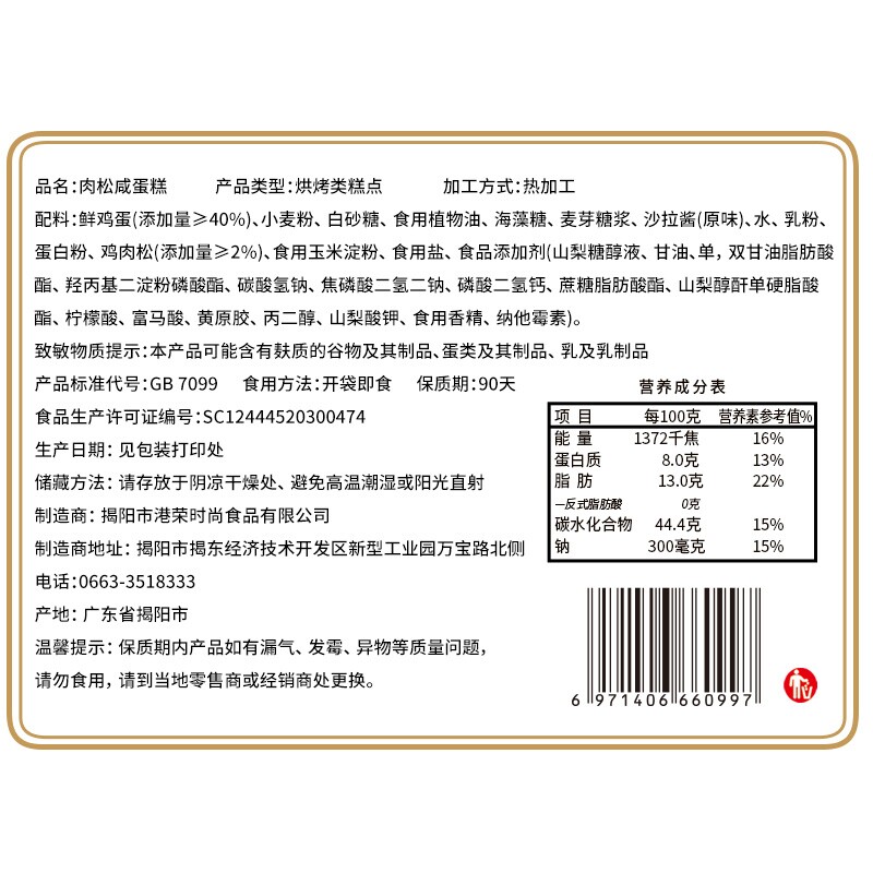 天猫港荣肉松咸蛋糕营养健康早餐代餐老人小孩零食点心办公室下午茶