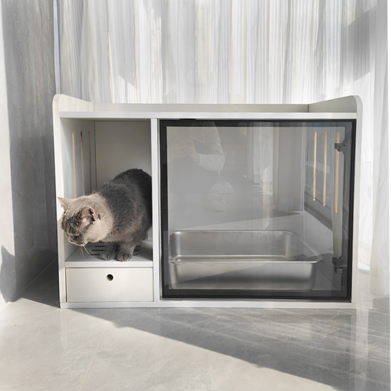 淘宝实木半封闭式猫厕所柜防外溅防漏砂可放猫砂盆的柜子玻璃门猫砂柜