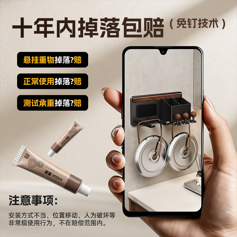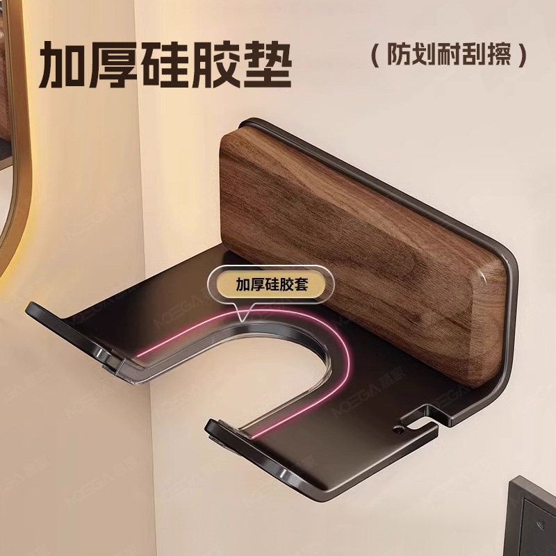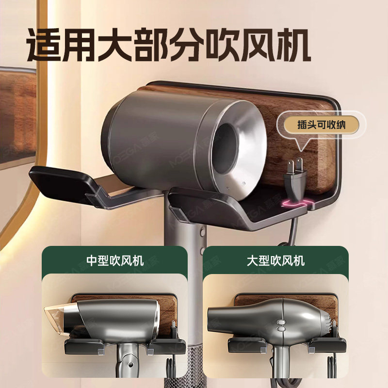 天猫慕家胡桃木吹风机置物架免打孔支架壁挂电吹风卫生间浴室风筒收纳