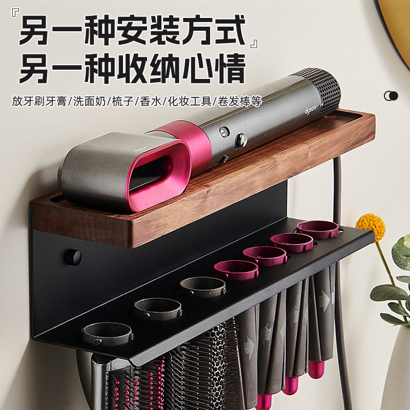 淘宝适配戴森卷发棒支架挂架浴室收纳造型美发器胡桃木置物架支架