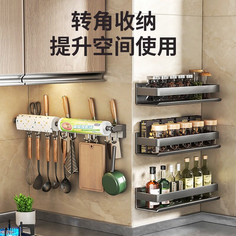 淘厨房置物架免打孔不锈钢家用壁挂式调味料筷子刀架用品大全收纳架