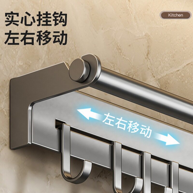 淘免打孔304不锈钢本色厨房置物架厨具五金厨卫挂钩挂件挂架挂杆