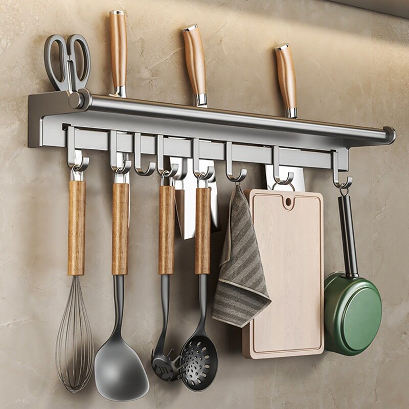 淘宝厨房刀架挂钩置物架免打孔壁挂式多功能刀具收纳挂架筷子锅铲勺子
