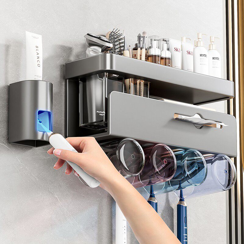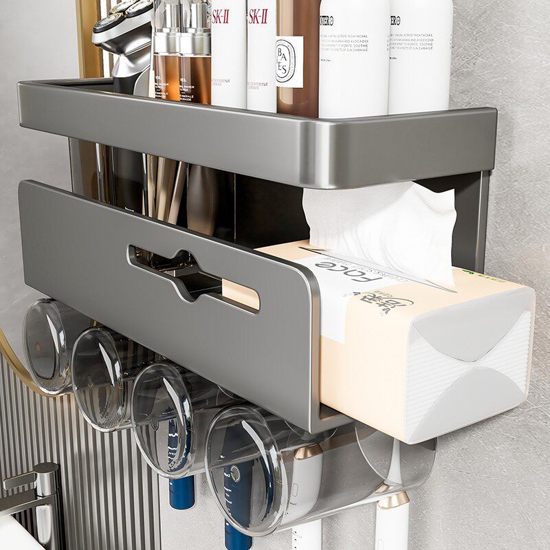 这款牙刷置物架专为现代家庭浴室设计,采用免打孔安装方式,无需破坏墙面,粘贴牢固,拆卸不留痕。集牙刷架、漱口杯、纸巾盒于一体,巧妙分层收纳,有效利用洗漱台空间,保持台面整洁有序。材质防水防潮,耐用易清洁,适用于多种装修风格。顶部可放置纸巾,中层悬挂漱口杯,底部设有牙刷插孔,分类明确,取用方便。整体设计简约实用,提升卫生间收纳效率,让日常洗漱更加便捷舒适,是家居浴室的理想收纳助手。